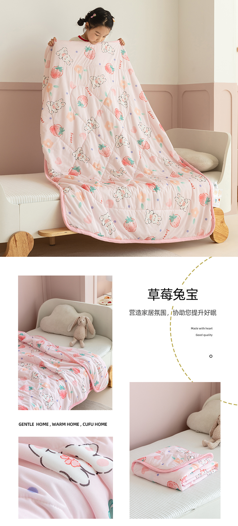 商品名称:艾佳宝贝 2025春夏新款A类凉感丝儿童糖果抗菌夏被 草莓兔宝