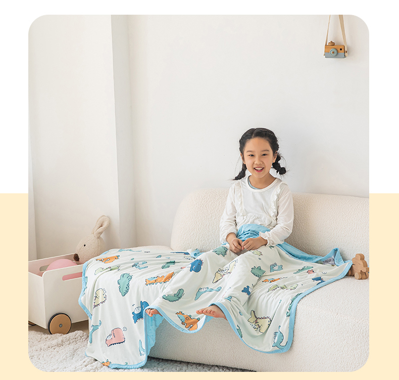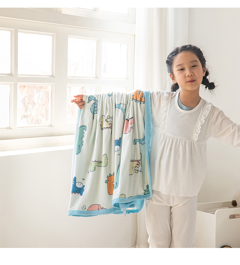 艾佳宝贝 2025新款A类针织豆豆儿童多功能宿舍午睡安抚盖毯 恐龙世界-盖毯