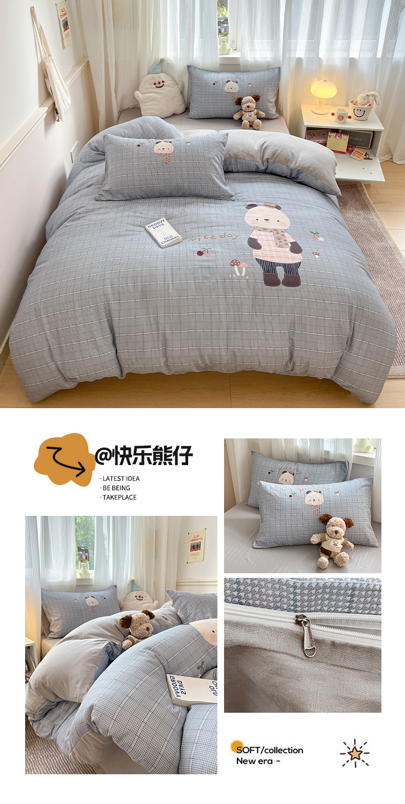 商品名称:莱米家纺 2025新款全棉双层纱数码印花四件套 快乐熊仔