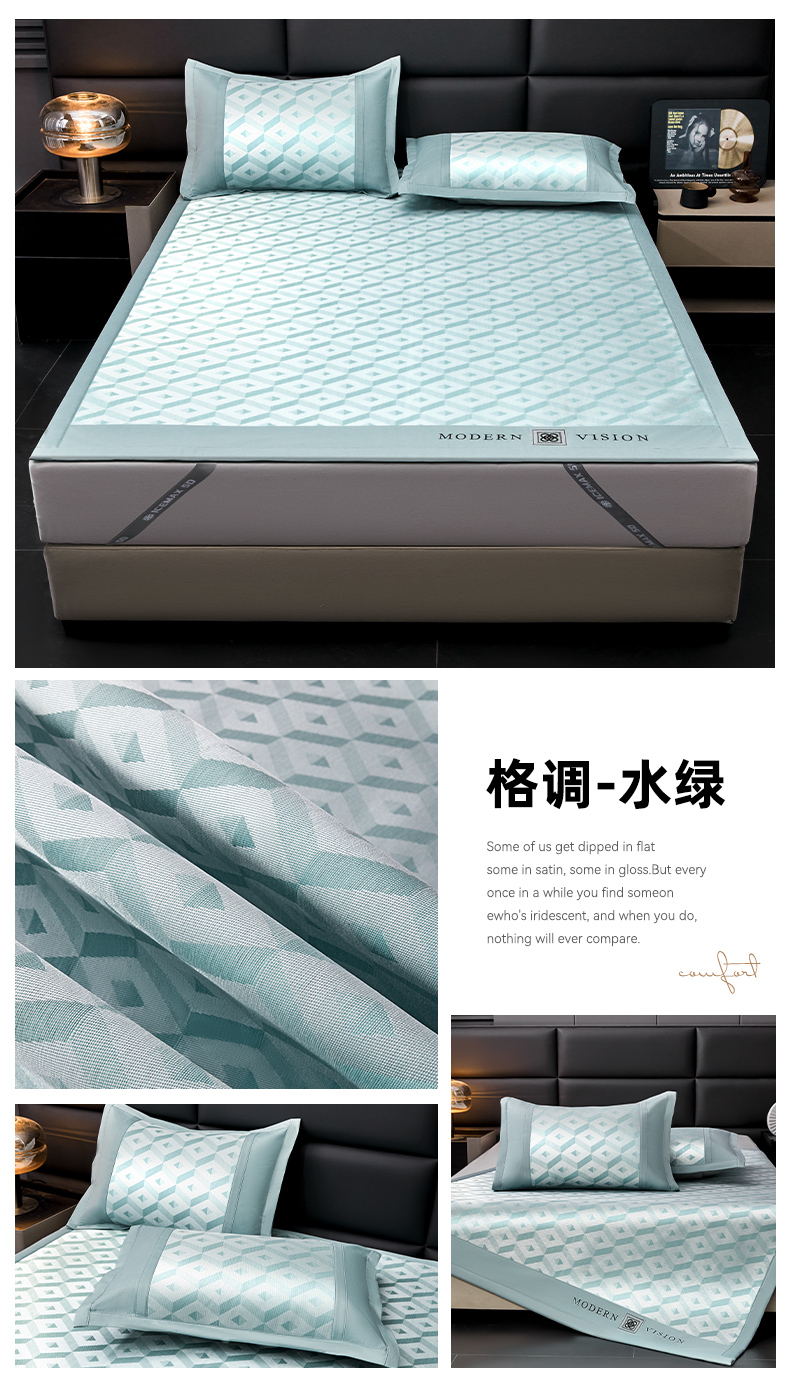 当前位置: 91家纺网 > 商品网购 > 床上用品 > 凉席 > 凉席套件 > 全季家居 2025新款5A抗菌3D立体冰柔凉感冰丝席 格调-水绿 床席款