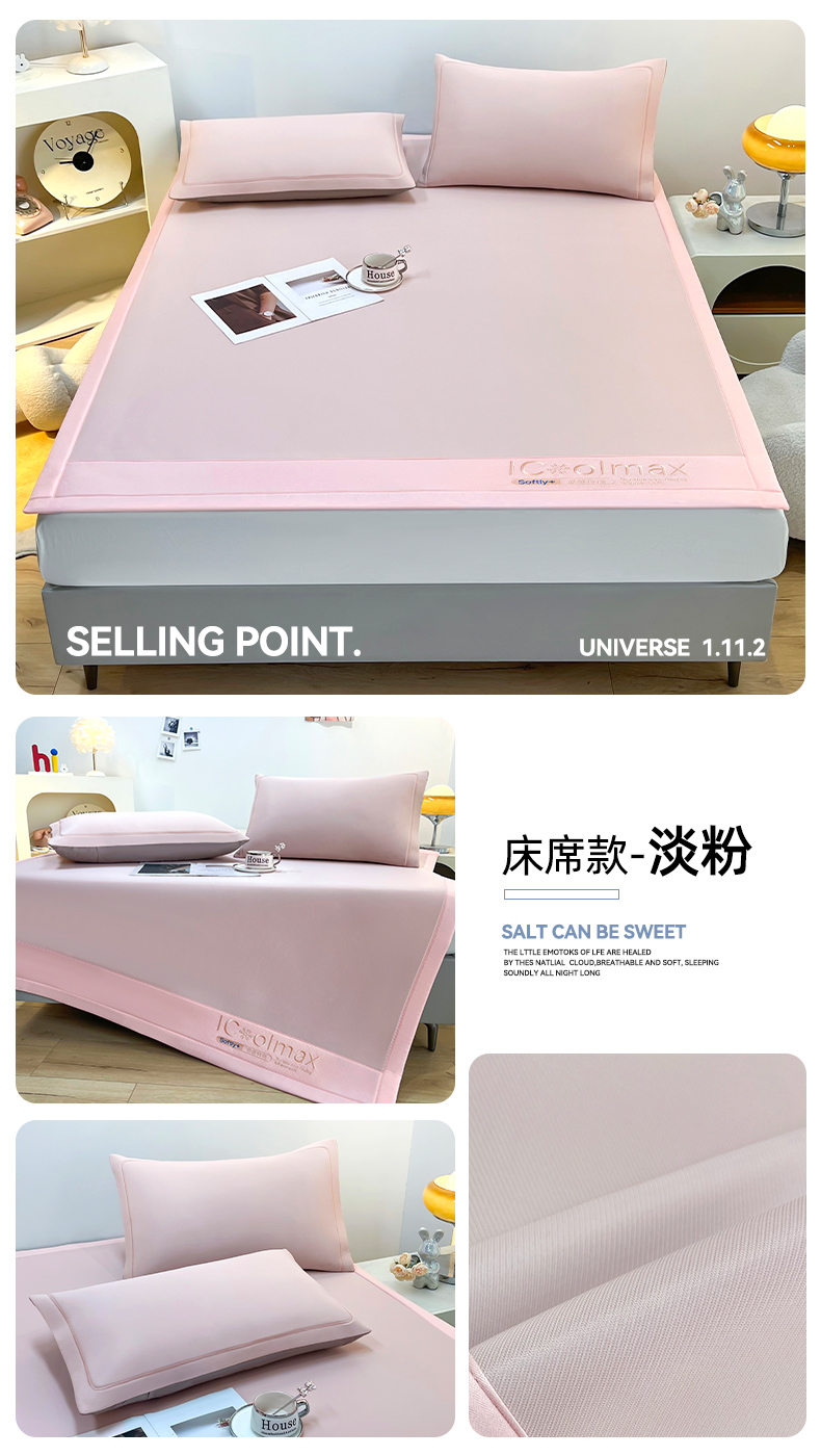 (总)全季家居 2023新款纯色凉感丝刺绣凉席,天蓝,灰色,粉色,绿色,草绿