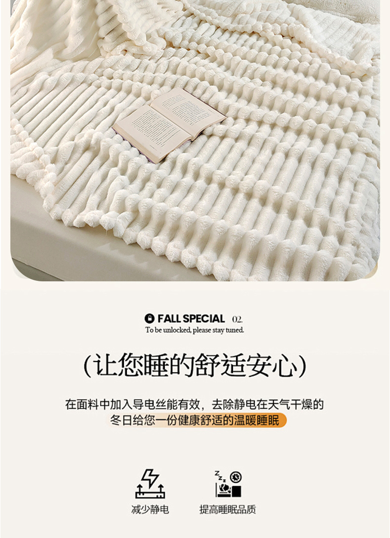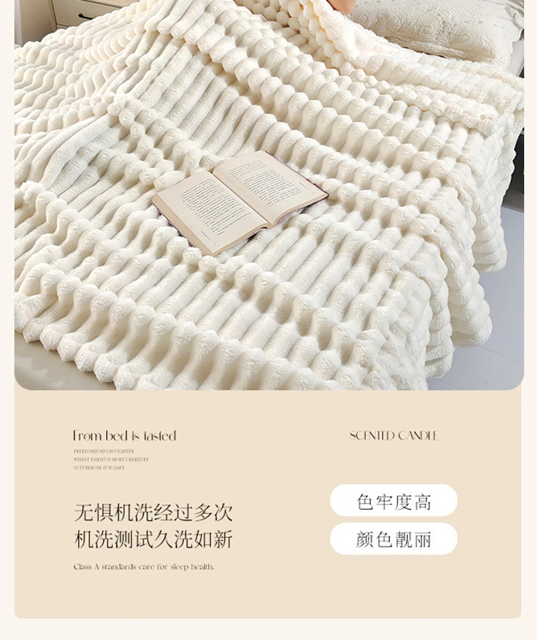 (总)美洲琳 2025新款提花简约珊瑚绒法莱绒毯毛毯毯子,白色,粉色,咖色,蓝灰,绿色,深灰