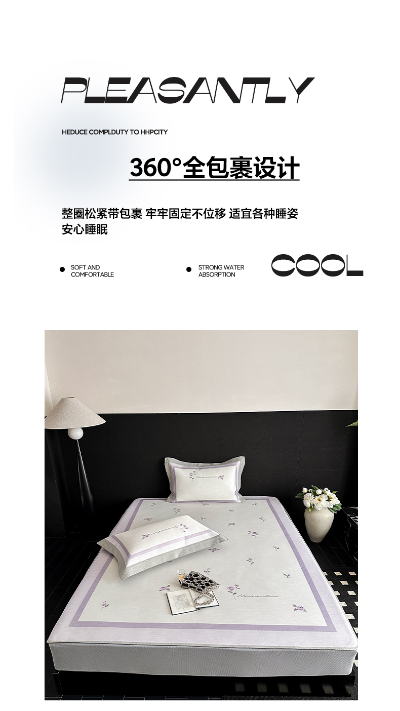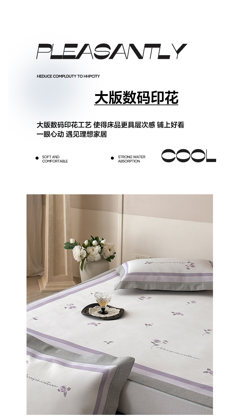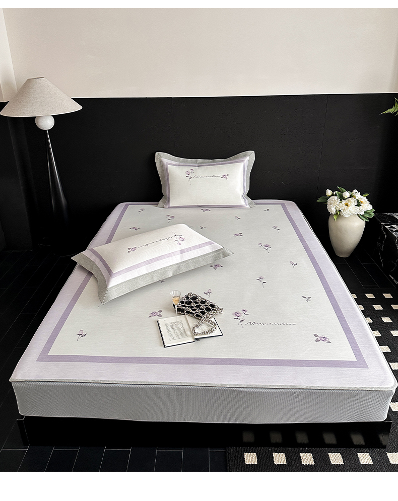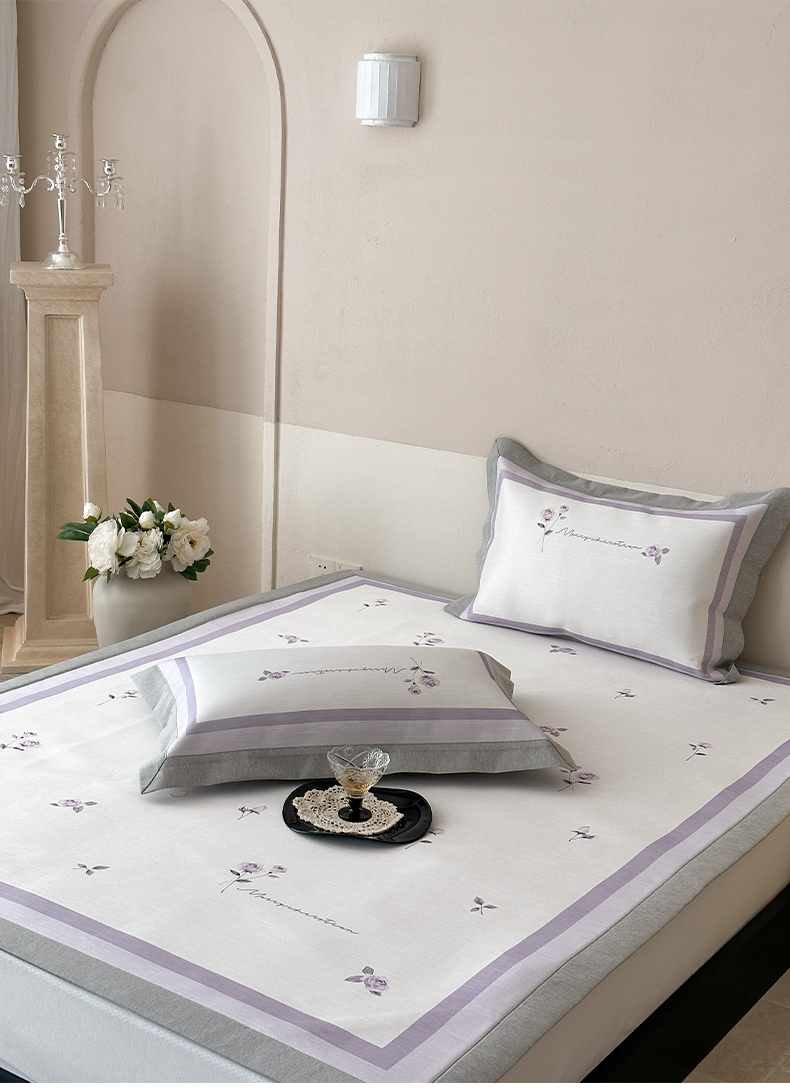 三味舒屋 2025新款凉感抗菌南法恬谧系列大版数码印花冰丝床席-床笠 米蕾紫-床席款