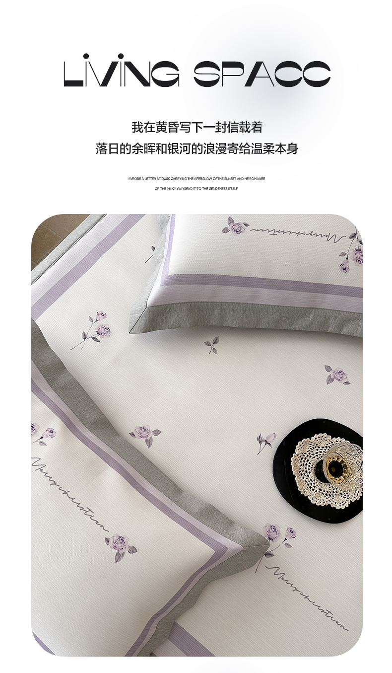 商品名称:三味舒屋 2025新款凉感抗菌南法恬谧系列大版数码印花冰丝床席-床笠 米蕾紫-床席款