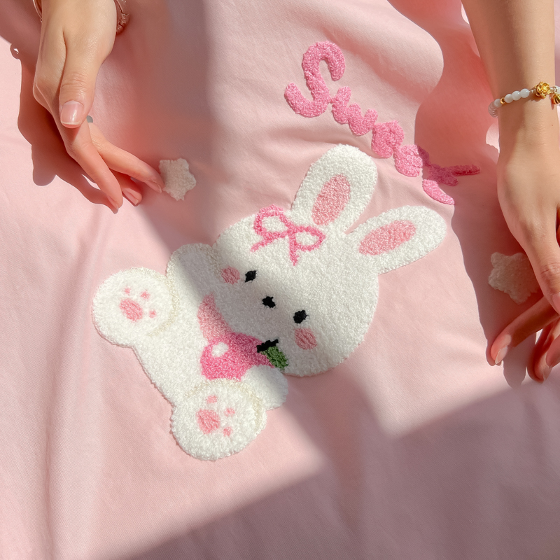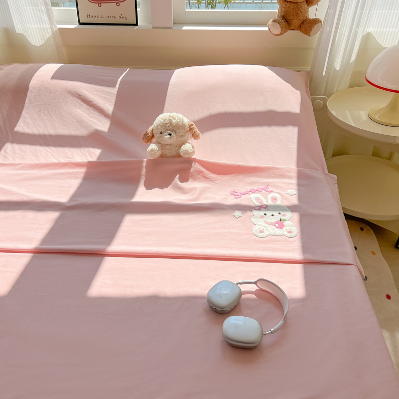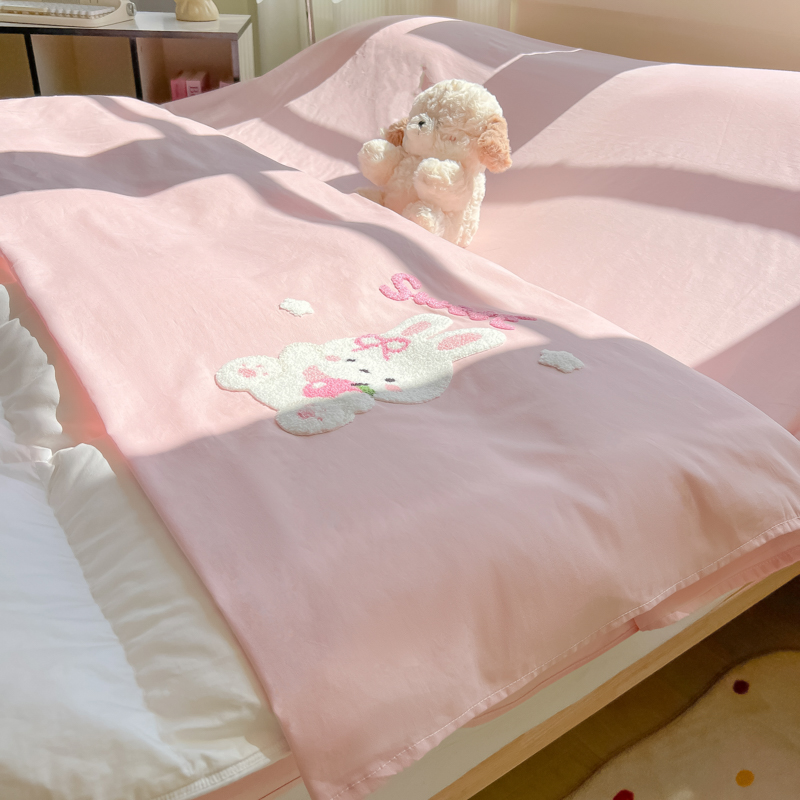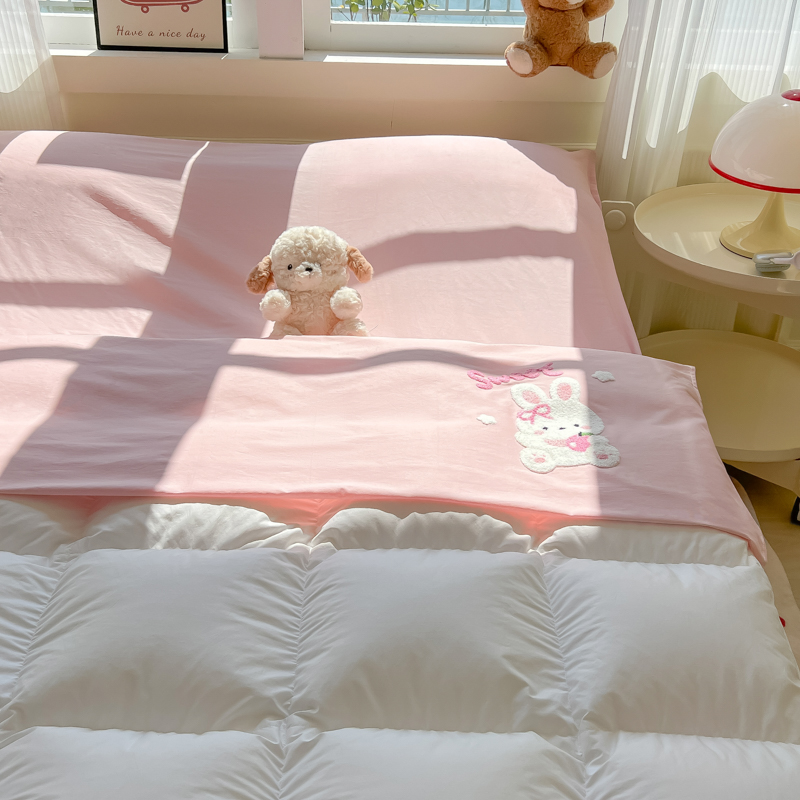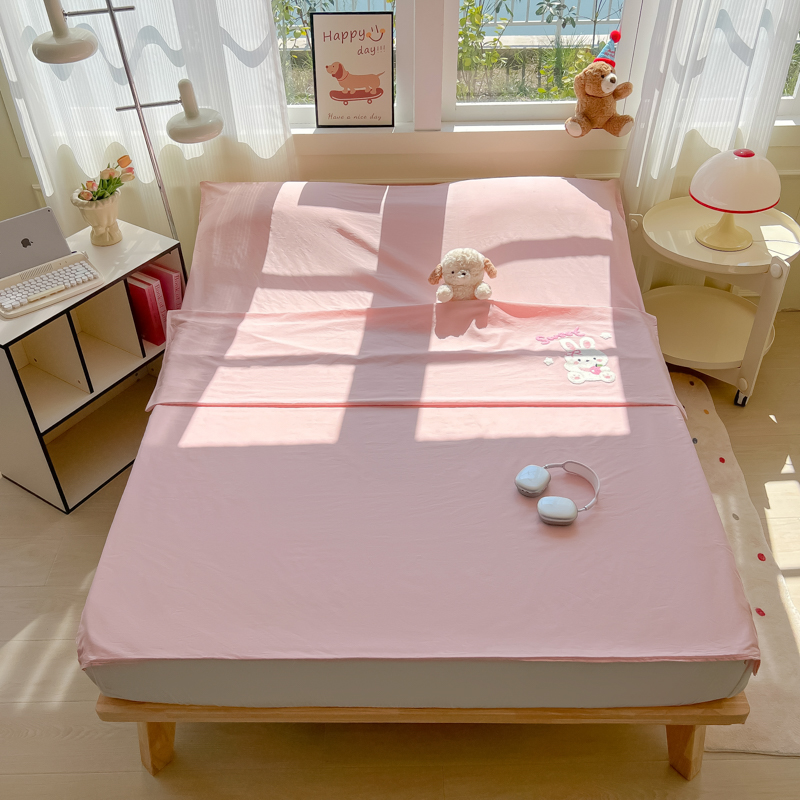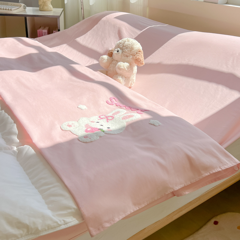 商品名称:柒星睡袋 2025新款款40支全棉纯色毛巾绣可拆分隔脏睡袋 小白兔 粉