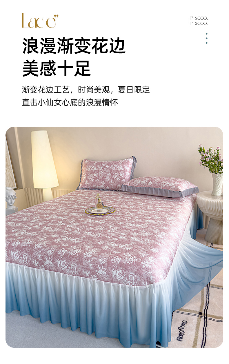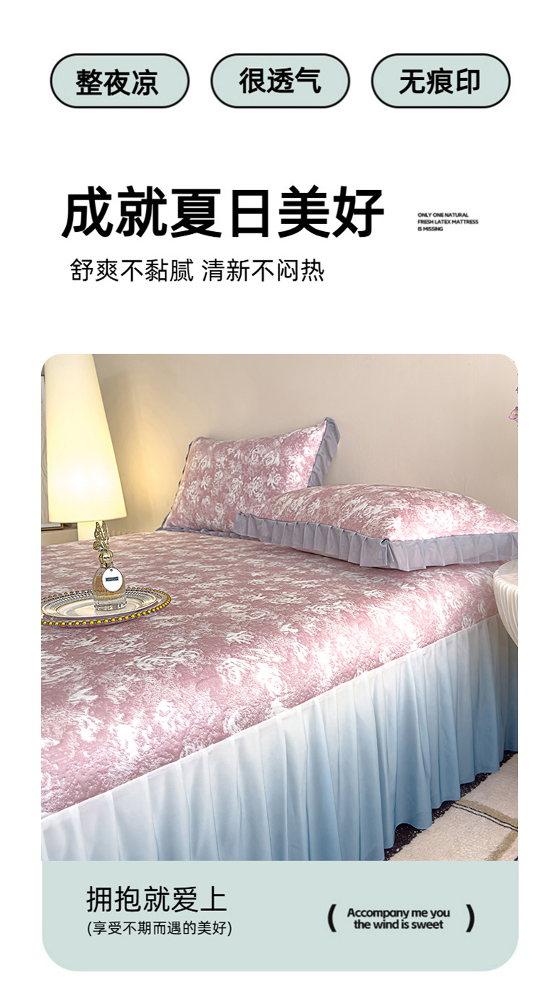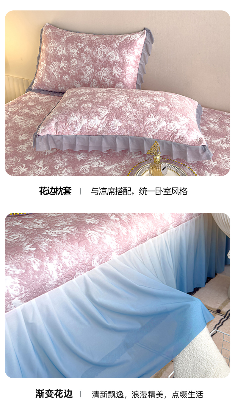 冬然家纺 2025新款冰豆豆席子凉席床裙款 梦幻玫瑰-粉