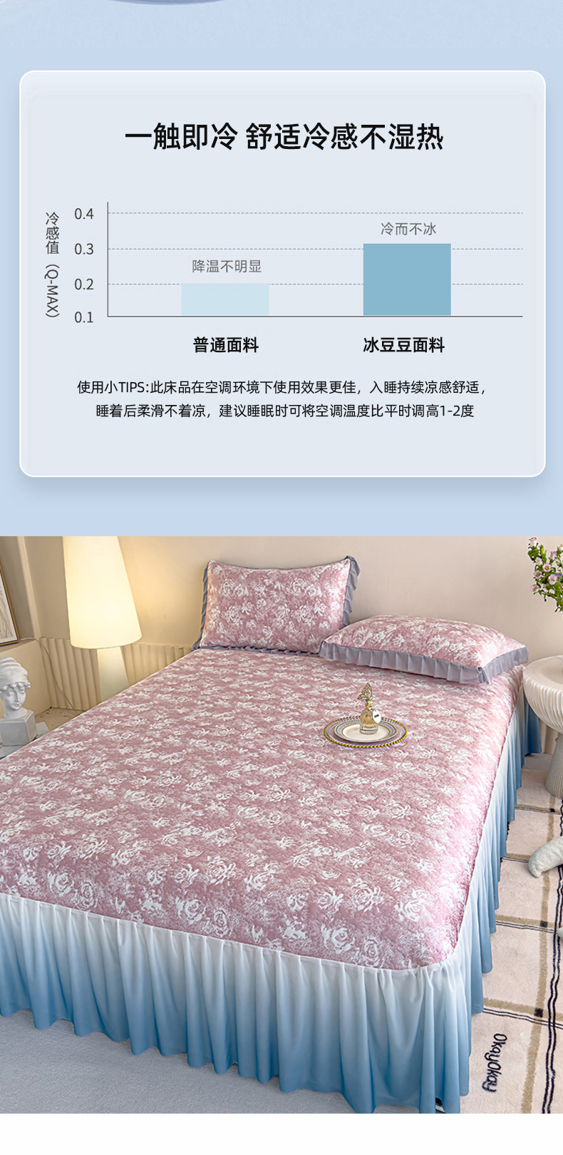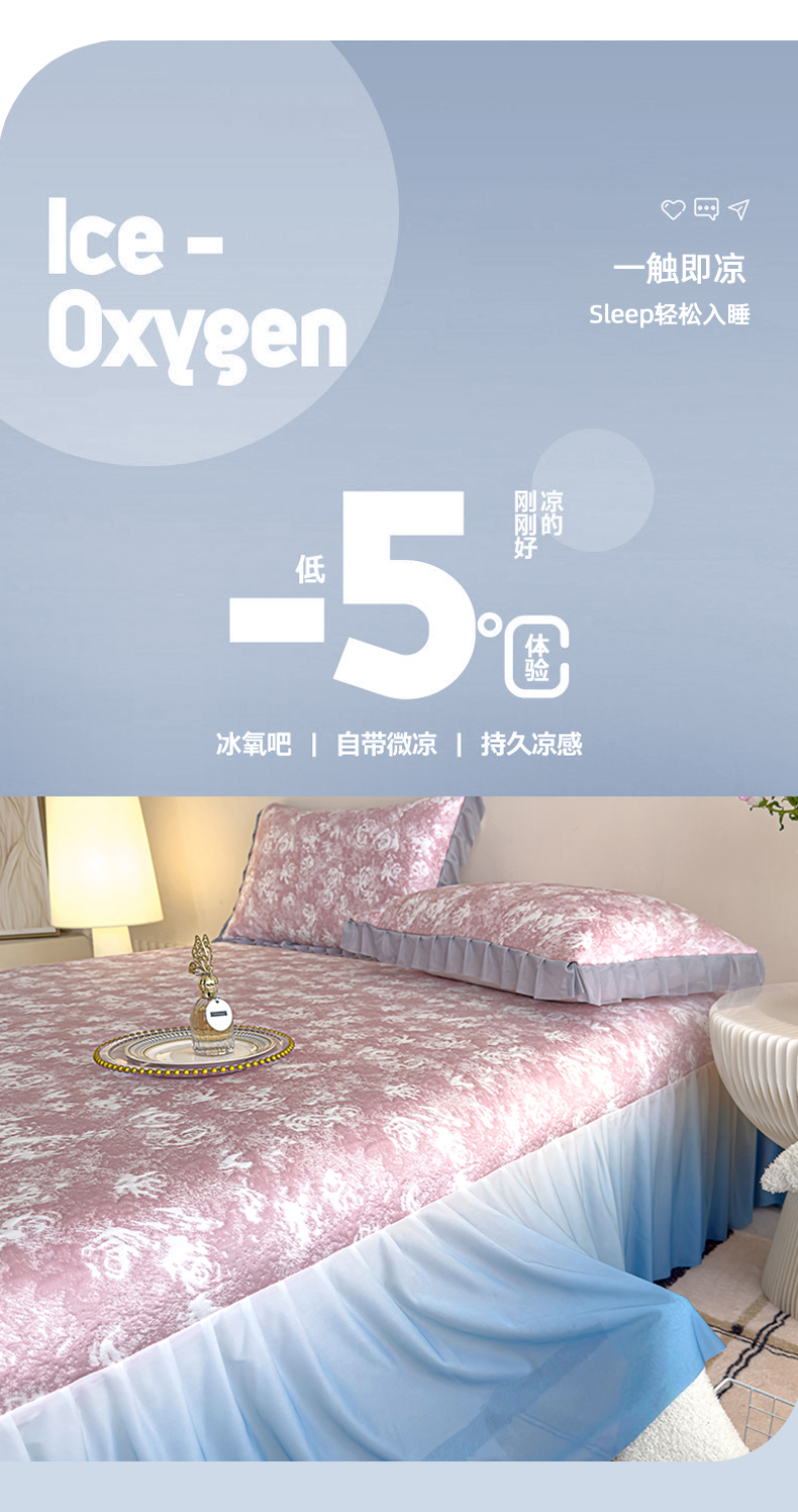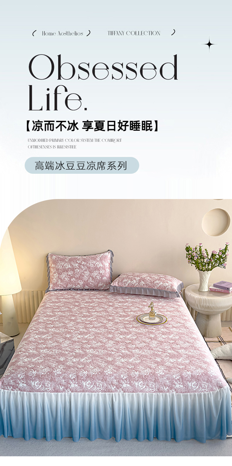冬然家纺 2025新款冰豆豆席子凉席床裙款 梦幻玫瑰-粉