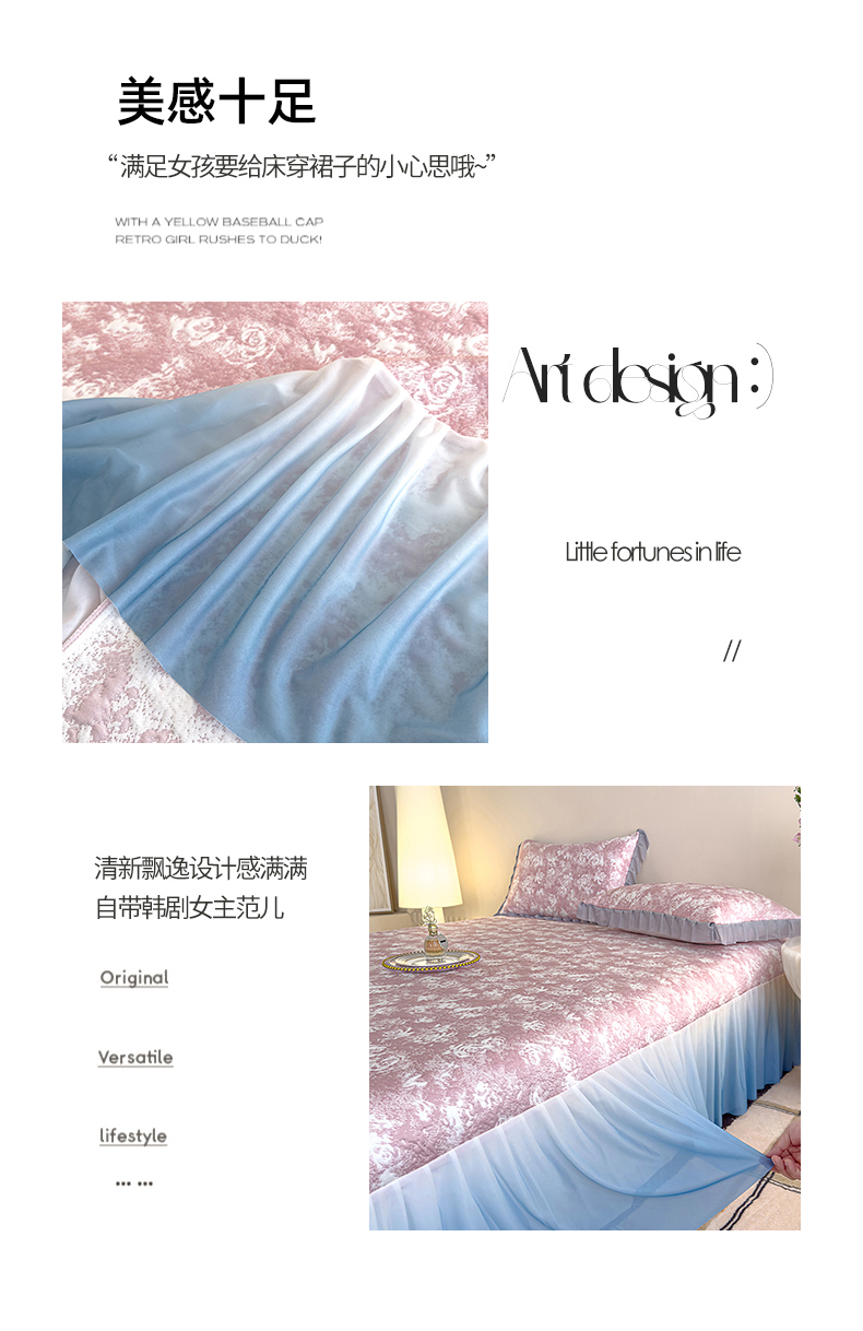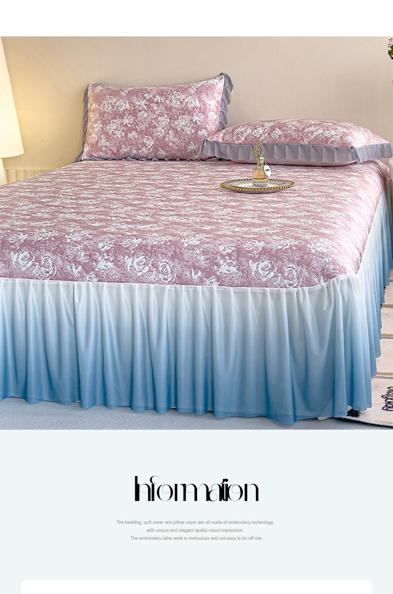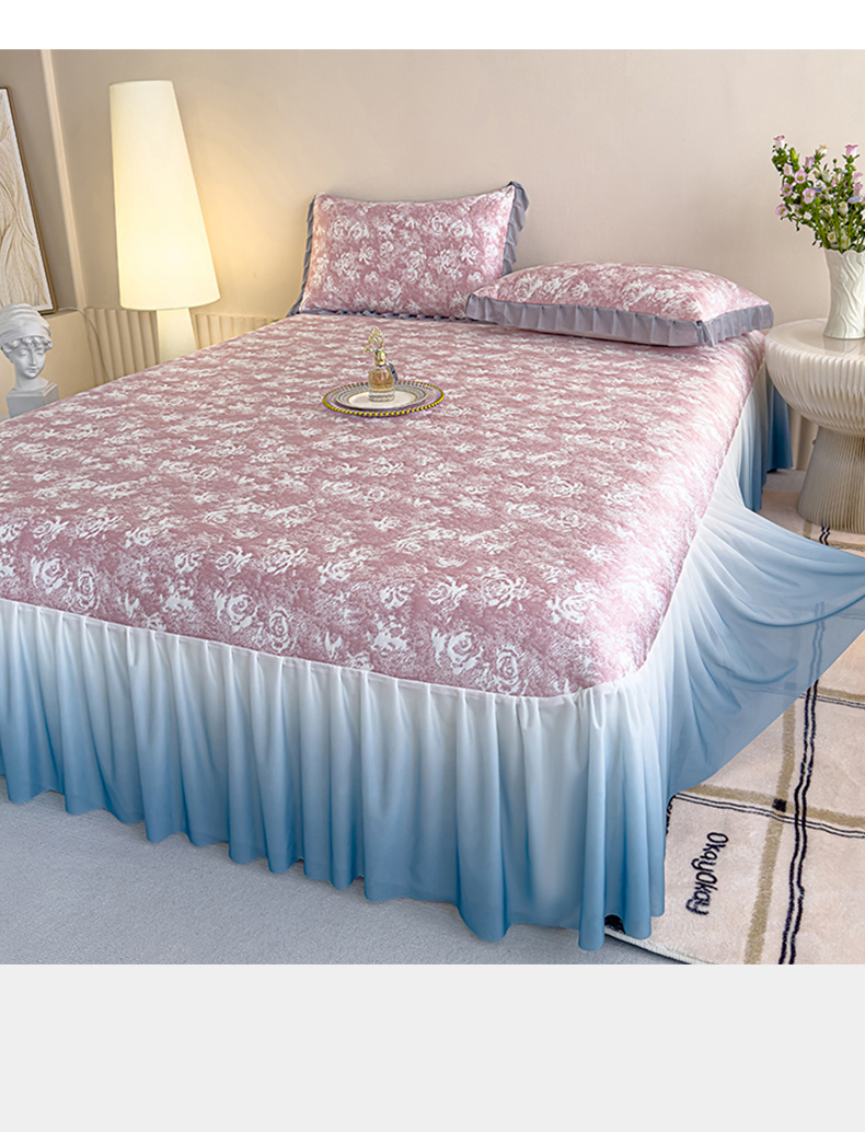 冬然 2022新款床盖牛奶绒夹棉床裙四件套单床裙单被套爱心格,爱心格