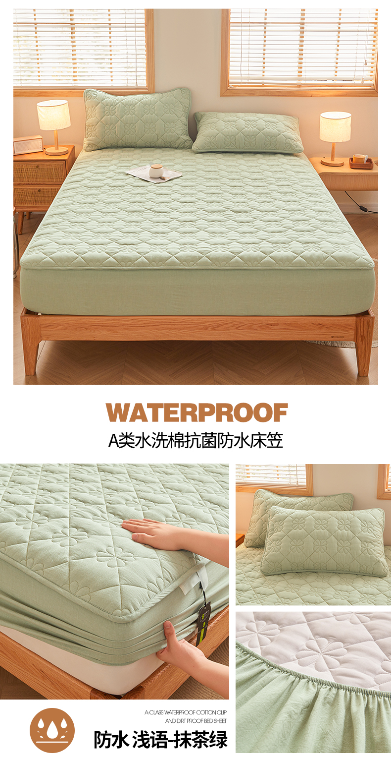 (总)3C 2025新款A类全棉四叶草防水隔脏床笠,防水 浅语-抹茶绿,防水 浅语-浅卡其,防水 浅语-香妃粉,防水 浅语-星空灰,防水 浅语-云朵白,防水 浅语-云雾灰,组合图