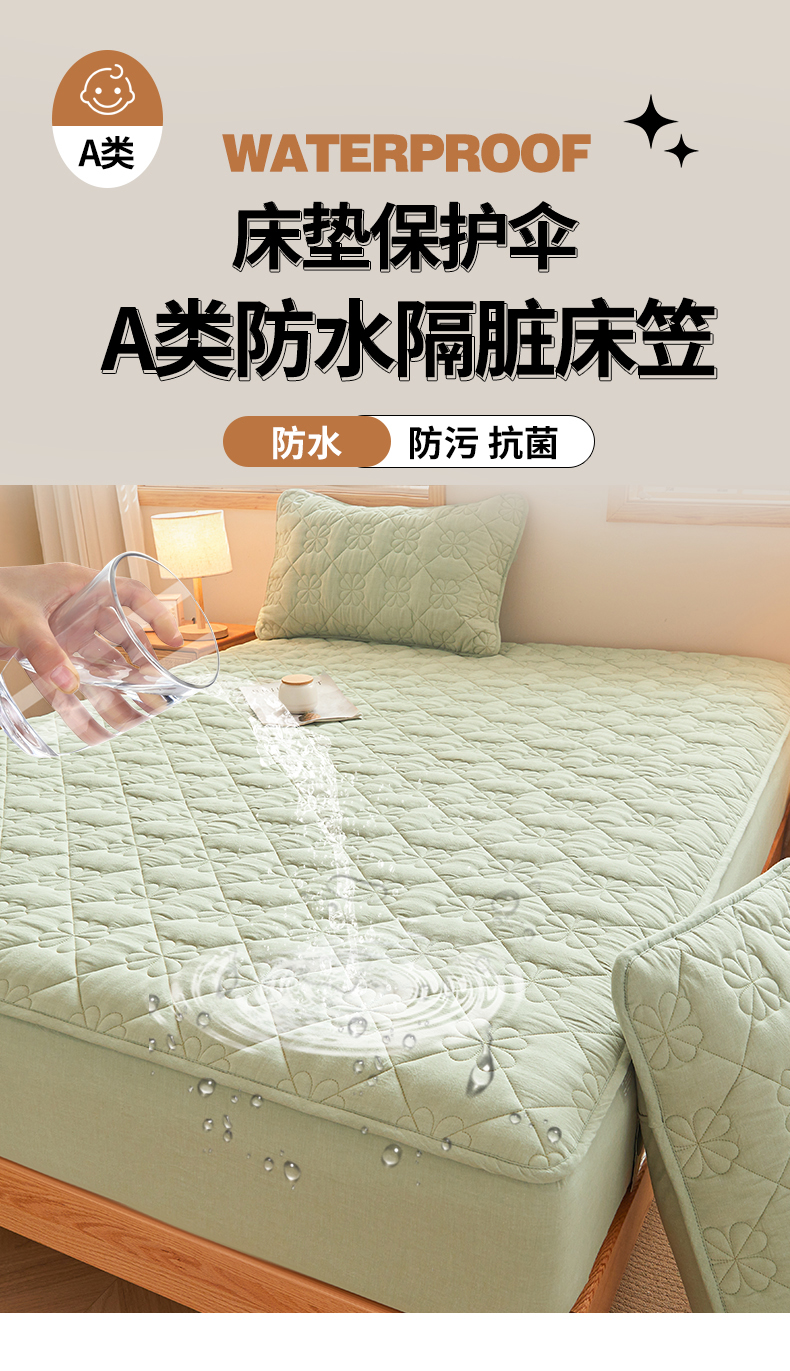 商品名称:(总)3C 2025新款A类全棉四叶草防水隔脏床笠