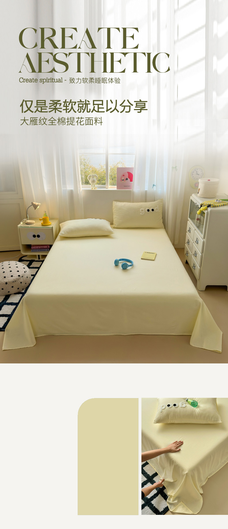 丽涵家纺 2025新款全棉大雁纹单品床单床单三件套 good浅米黄