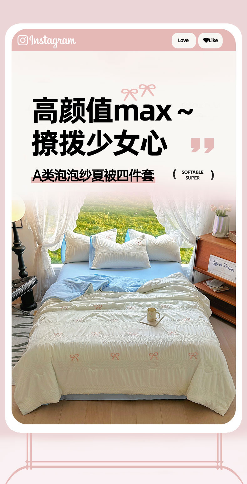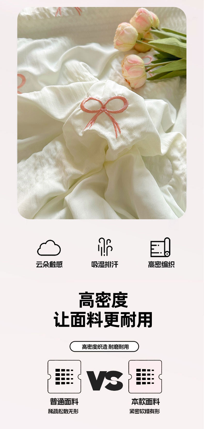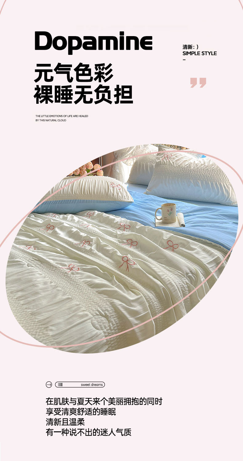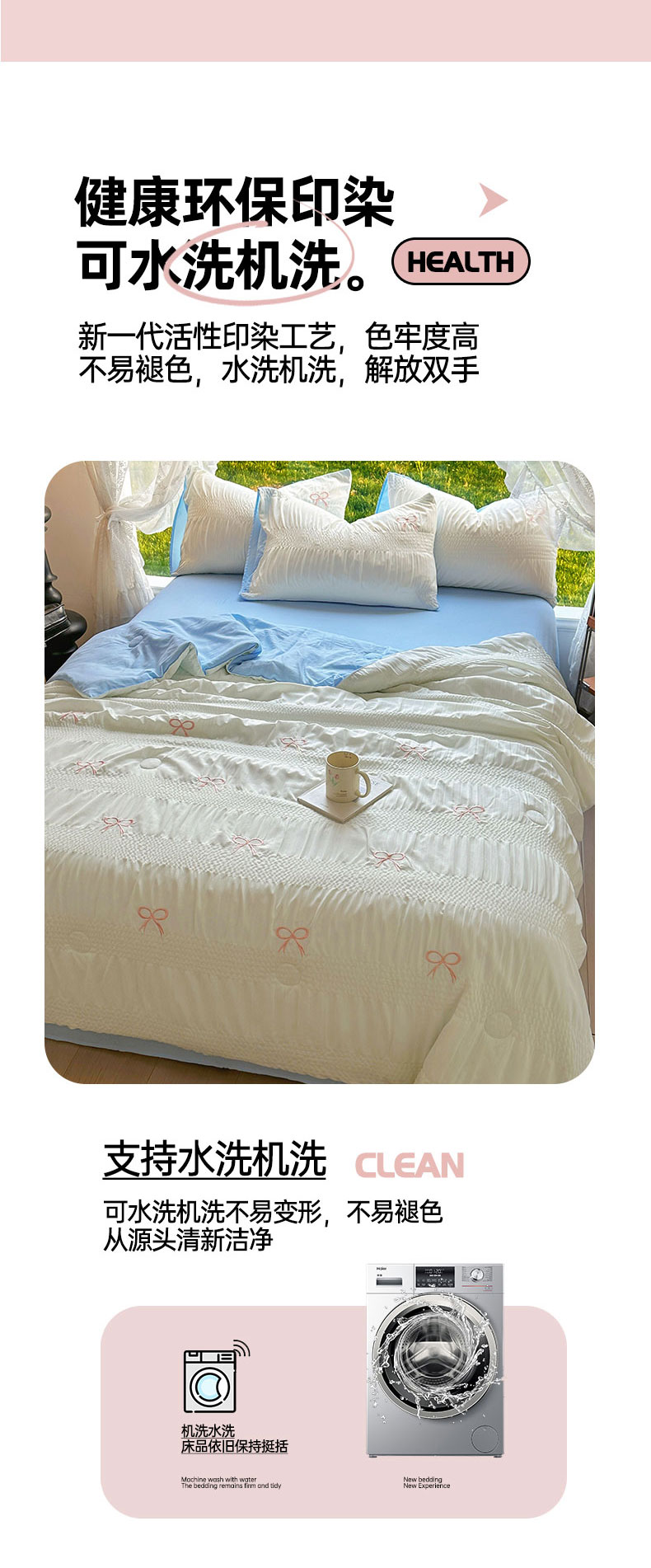 当前位置: 91家纺网 > 商品网购 > 床品套件 > 四件套 > 全棉普通四件套 > 灰鲸 2025新款泡泡纱郁金香,蝴蝶结满绣系列夏被四件套 蝴蝶结-奶昔白+天空蓝