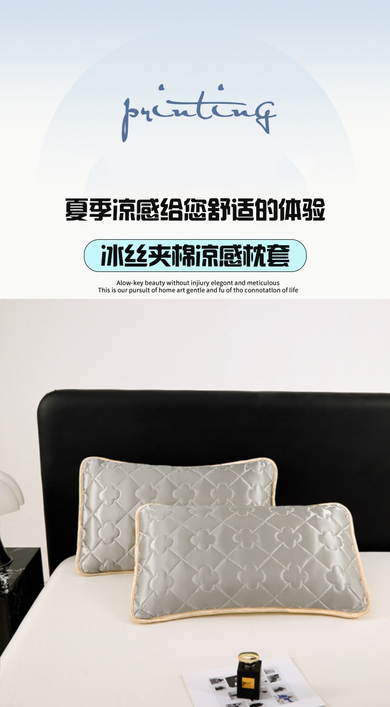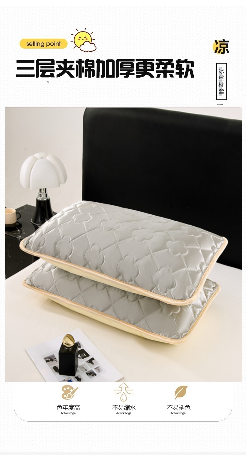 商品名称:(总)梦舒羽 2025新款夏季冰丝凉感夹棉枕套单人一对装可水洗加厚枕头套宿舍48x74cm枕芯套