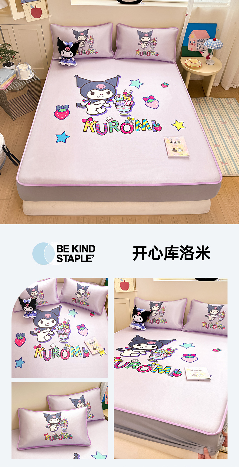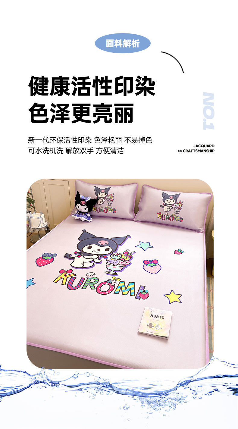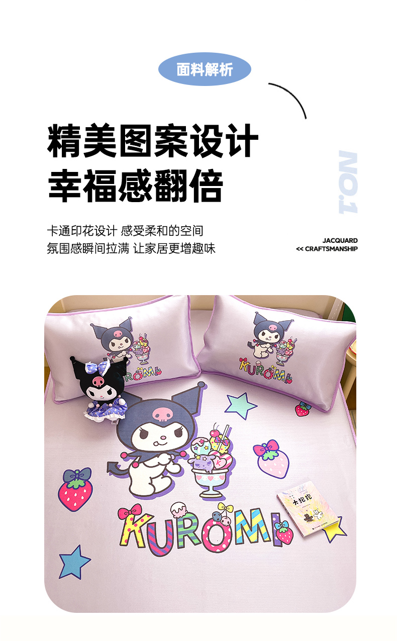 博雅新款三丽欧A类大版数码印花1200D冰丝凉席-床笠款 开心库洛米