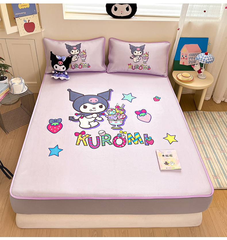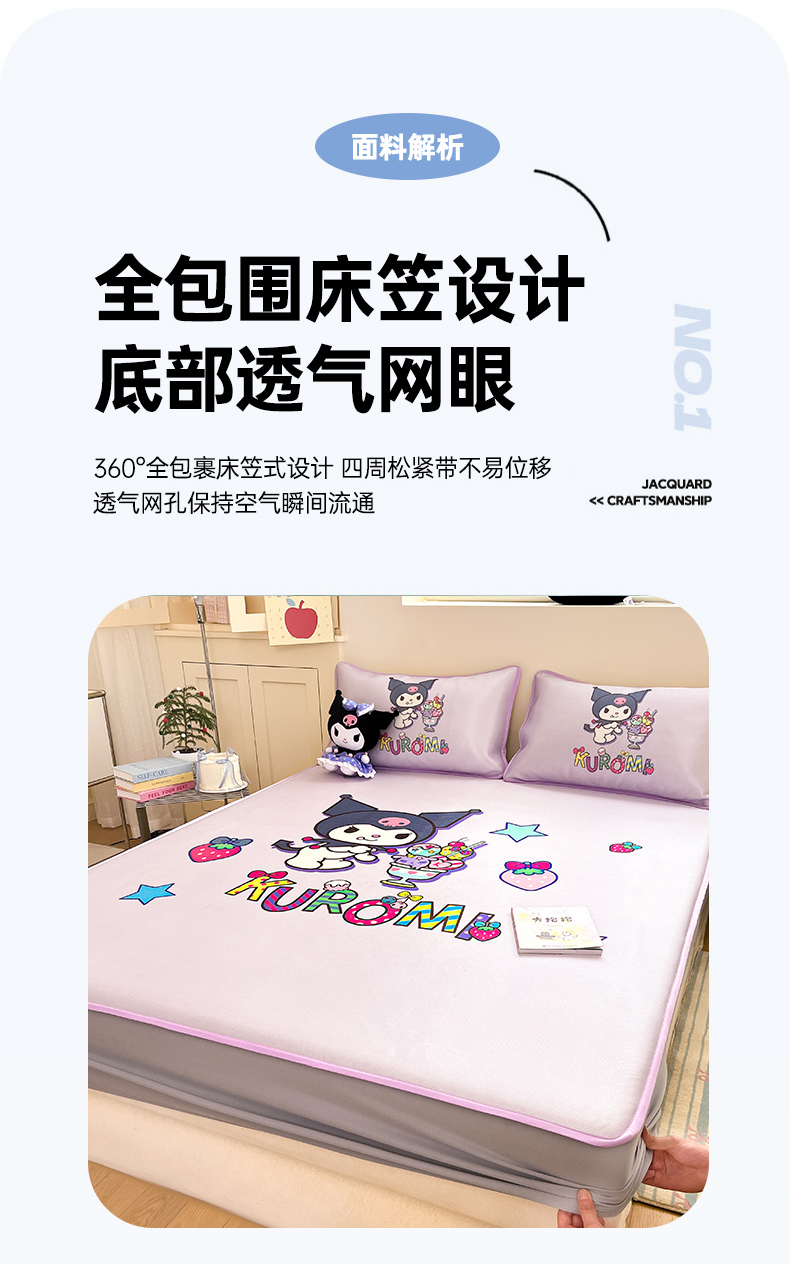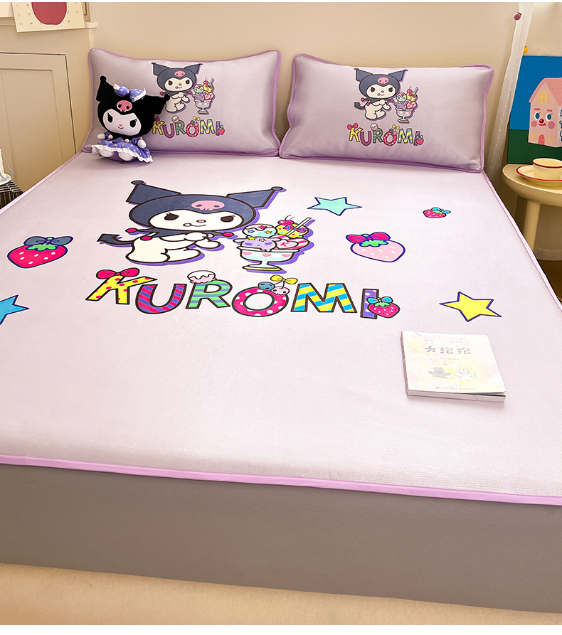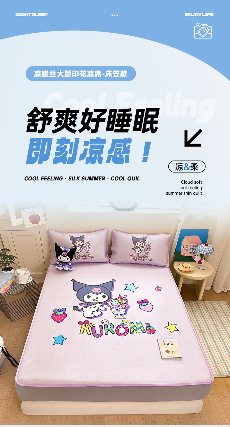 博雅新款三丽欧A类大版数码印花1200D冰丝凉席-床笠款 开心库洛米