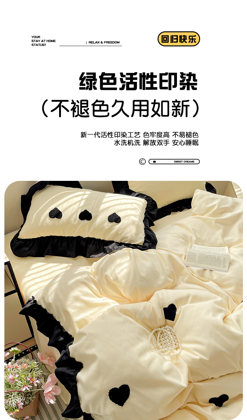 (总)艺玲家纺 2025新款赫本风系列法式花边水洗棉四件套,小香风 爱心-白色,小香风 爱心-黑色,小香风 爱心-奶黄,小香风 爱心-天蓝,小香风 爱心-玉色,小香风 蝴蝶结-白色,小香风 蝴蝶结-黑色,小香风 蝴蝶结-奶黄,小香风 蝴蝶结-天蓝,小香风 蝴蝶结-玉色