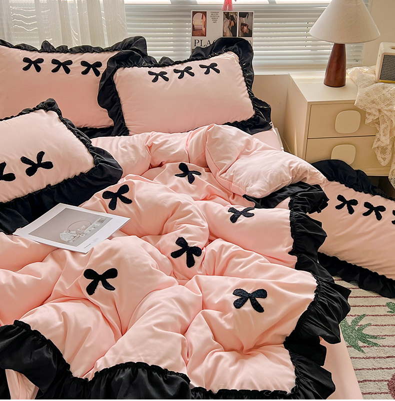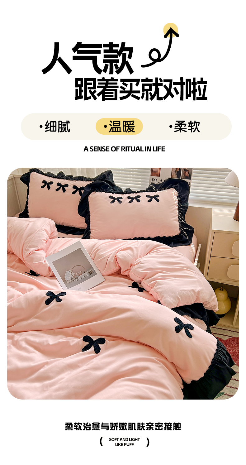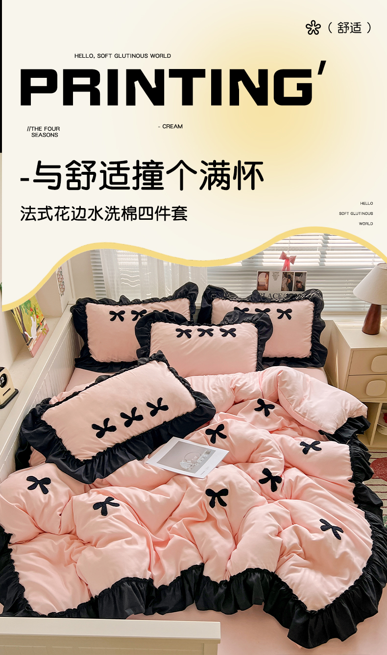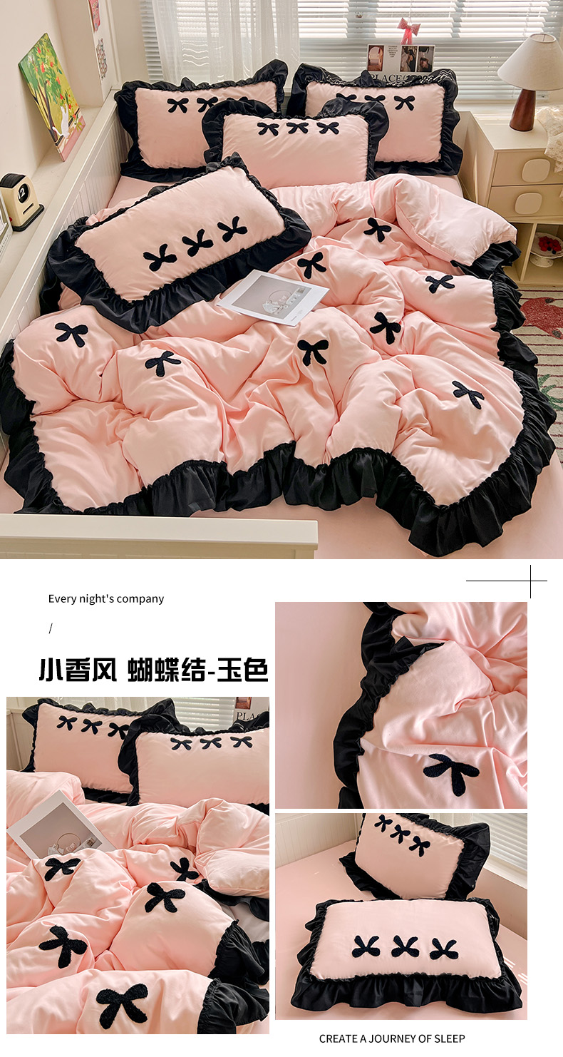 当前位置: 91家纺网 > 商品网购 > 床品套件 > 四件套 > 水洗棉四件套 > 艺玲家纺 2025新款赫本风系列法式花边水洗棉四件套 小香风 蝴蝶结-玉色