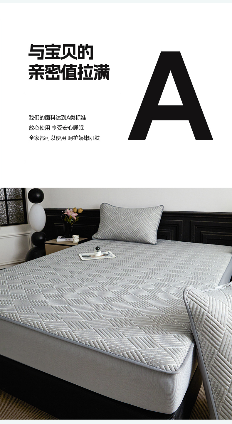 欧邦 2025新款外贸热销加厚菱形Pe中分子凉感豆豆软席 菱形-蓝 床笠款