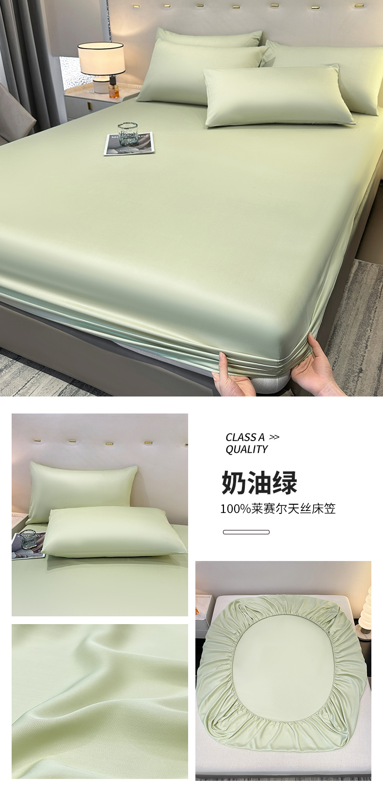 • 91家纺网 家纺一手货源 找家纺 菲梵家纺 2025新款纯色60支莱赛尔天丝单品系列-单床笠(提供买家秀) 柳叶青