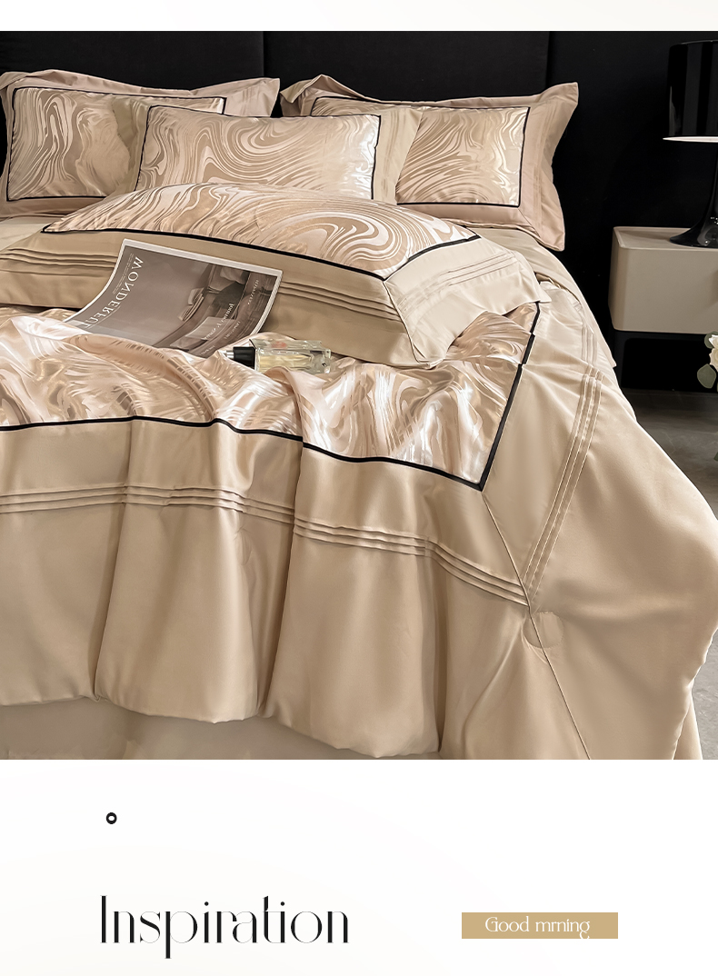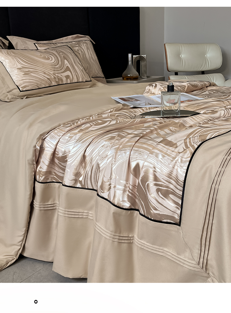 (总)博纳家纺 2025新款镂空大宽边拼角高级简奢款亲肤棉四件套-山水提花,繁星蓝,粉玉,高级灰,香槟,象牙白