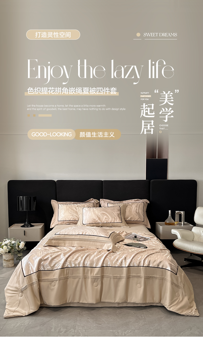 商品名称:(总)博纳家纺2025新款色织提花宽边高级简奢款拼角嵌绳款夏被四件套