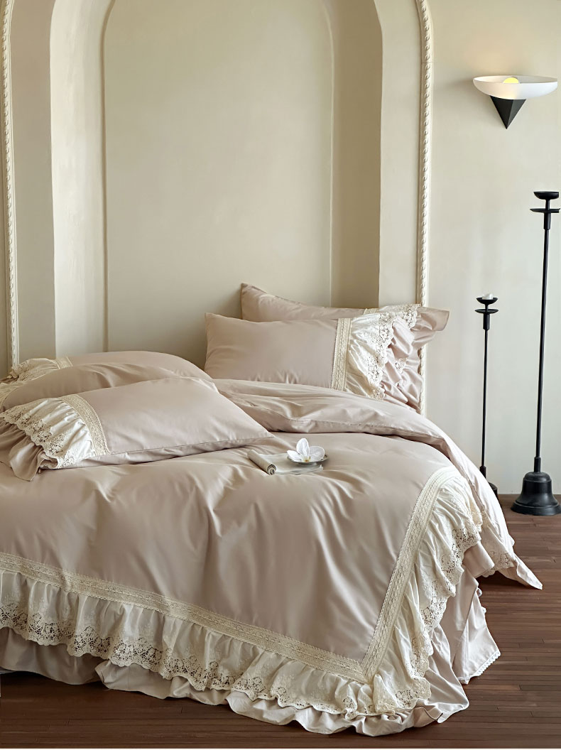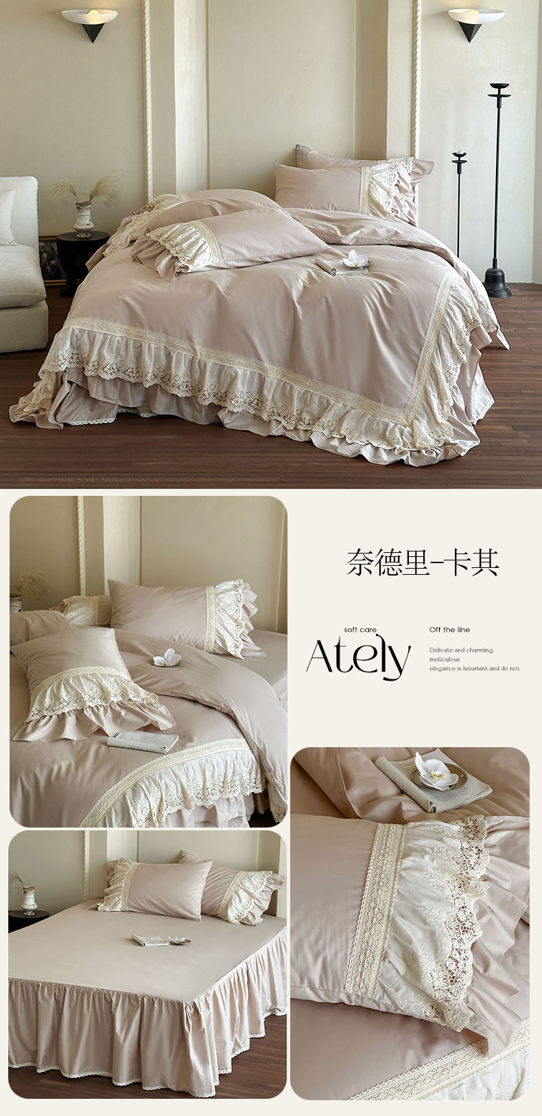 当前位置: 91家纺网 > 商品网购 > 床品套件 > 四件套 > 全棉普通四件套 > 惯盈家纺 2025新款法式镂空花边全棉四件套-奈德里【含买家秀】 奈德里-卡其