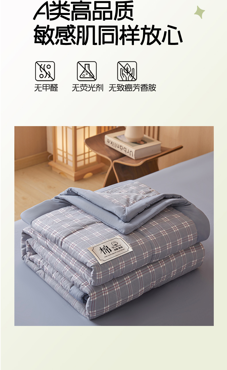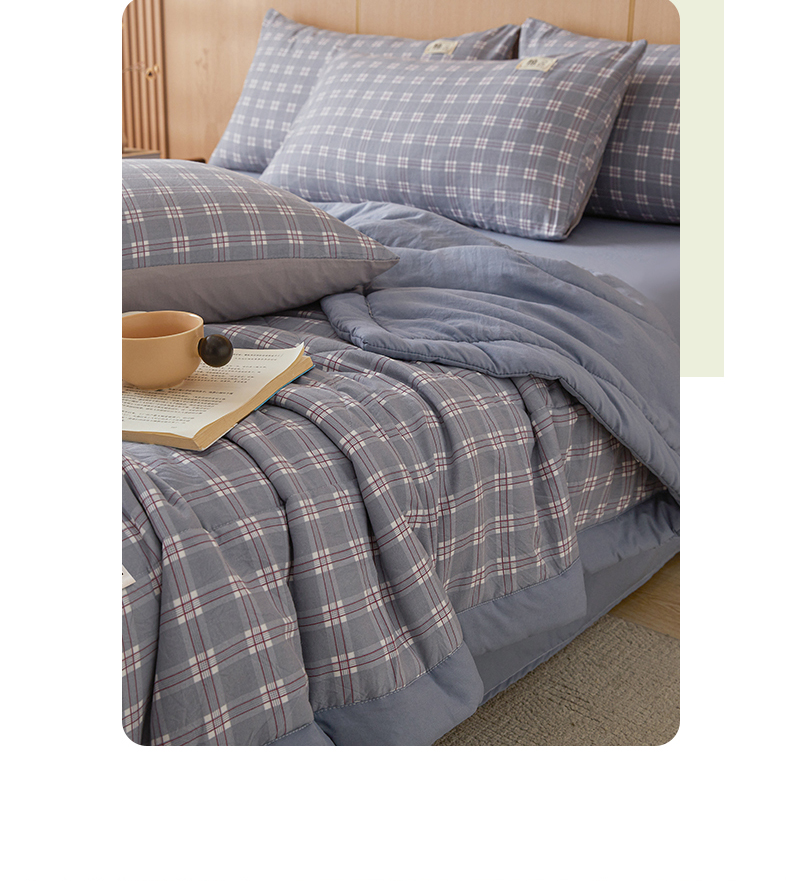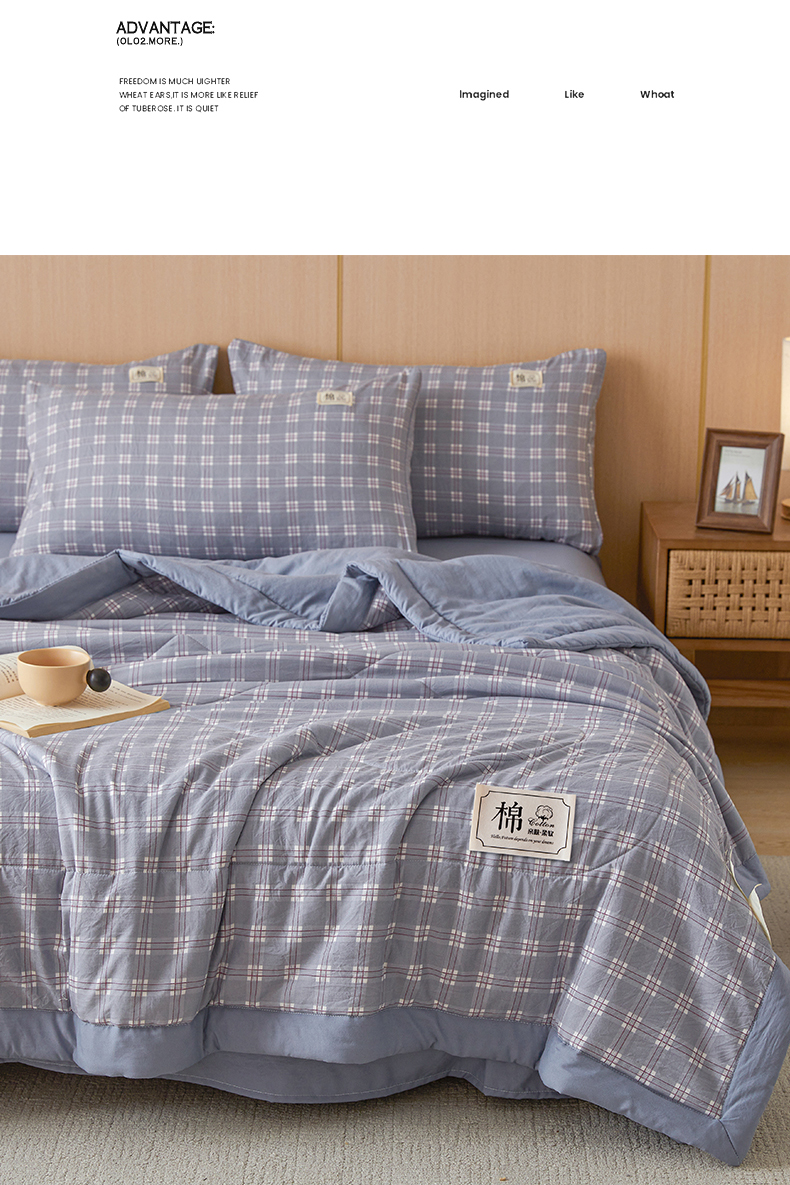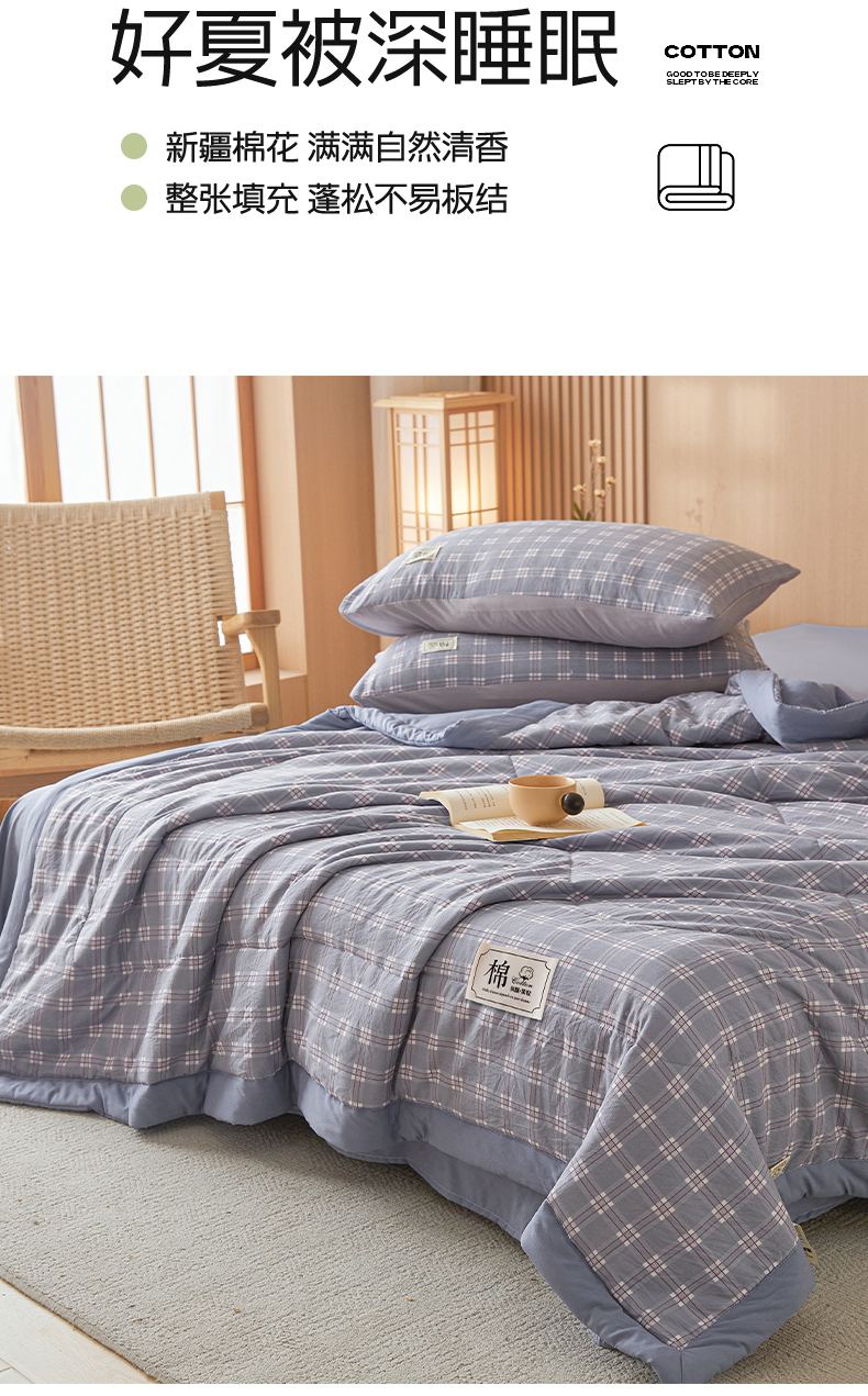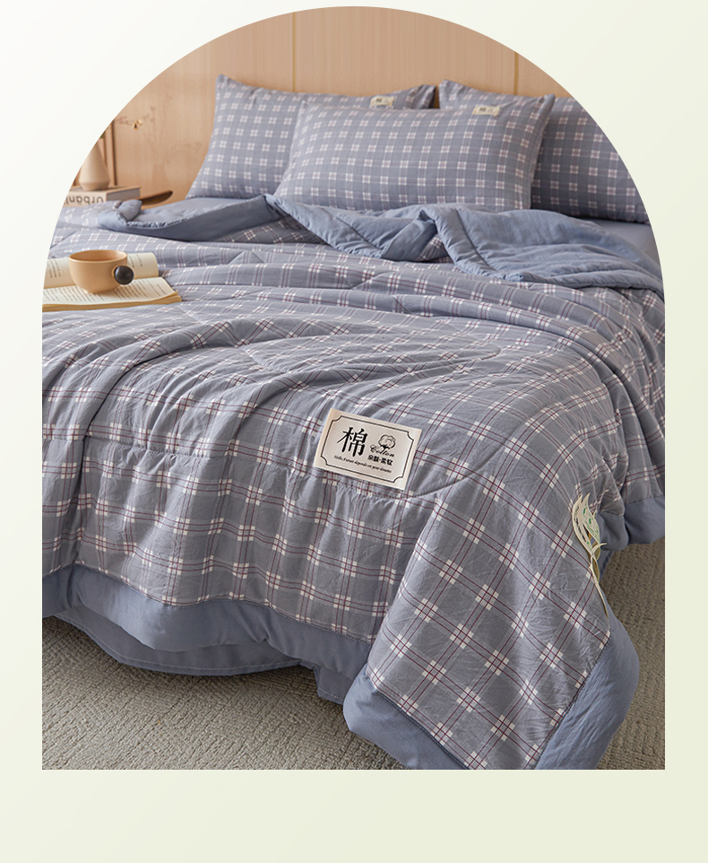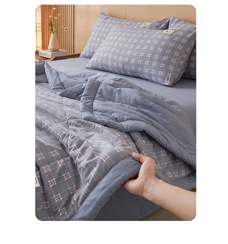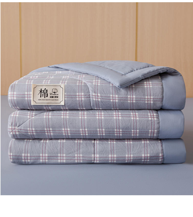 • 91家纺网 家纺一手货源 找家纺 悦织语 2025新款A类色织水洗棉夏被新疆棉花被空调被四件套 棉花夏被-蓝格
