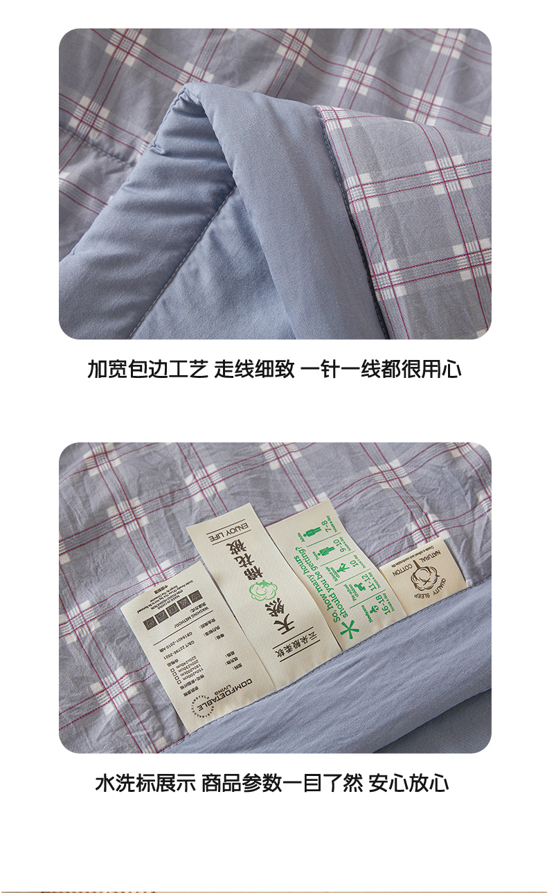 当前位置: 91家纺网 > 商品网购 > 被子 > 夏被 > 悦织语 2025新款A类色织水洗棉夏被新疆棉花被空调被四件套 棉花夏被-蓝格