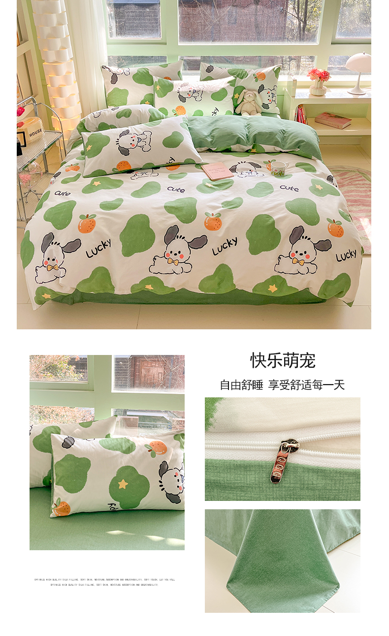 商品名称:琪格格 2025春夏新款全棉纯棉40S13372小清新四件套 快乐萌宠