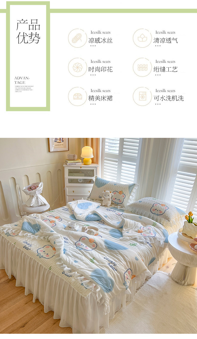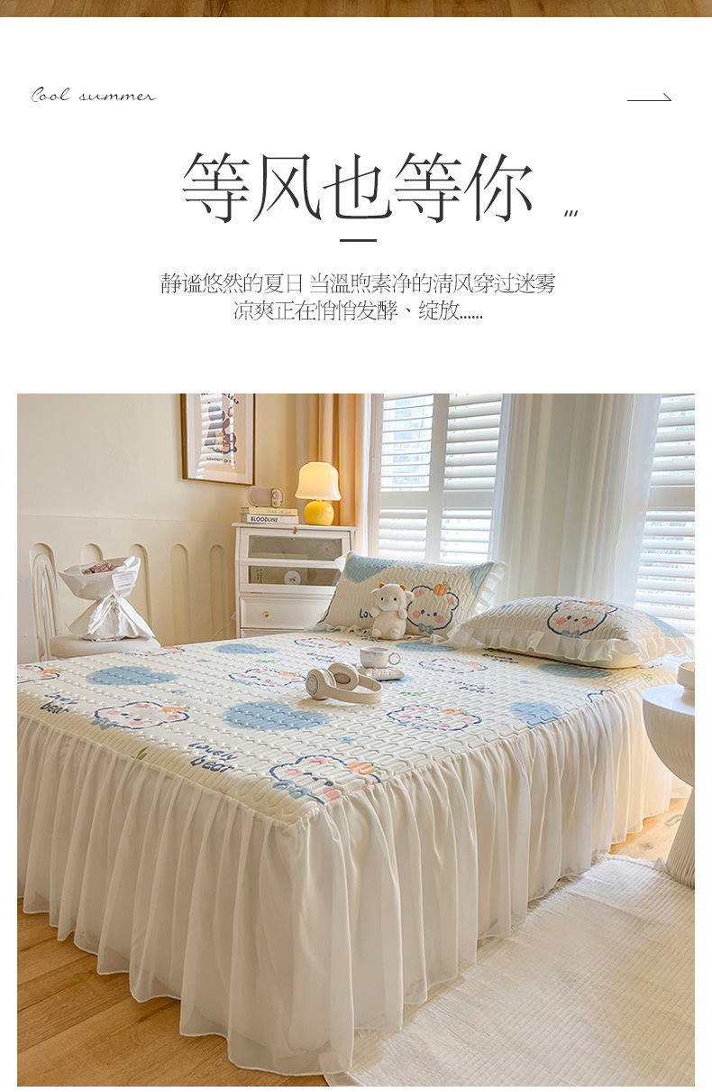商品名称:(总)慕澄2025新款小版印花床裙款乳胶凉席凉感丝夏被四件套