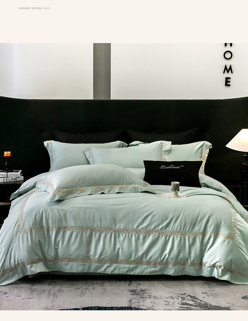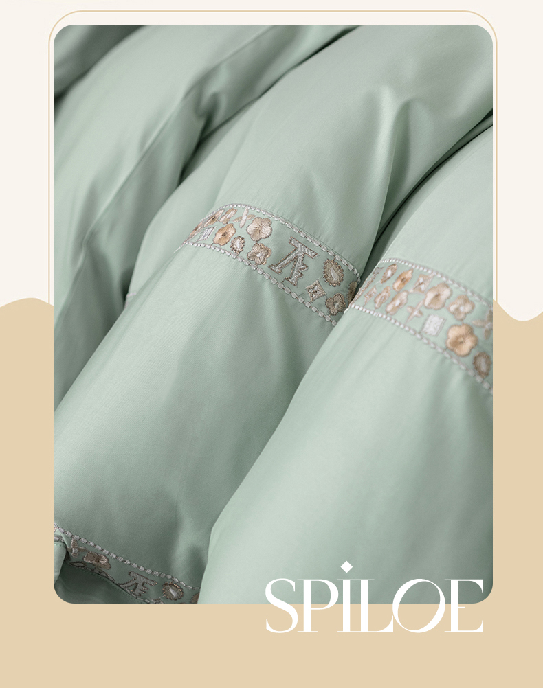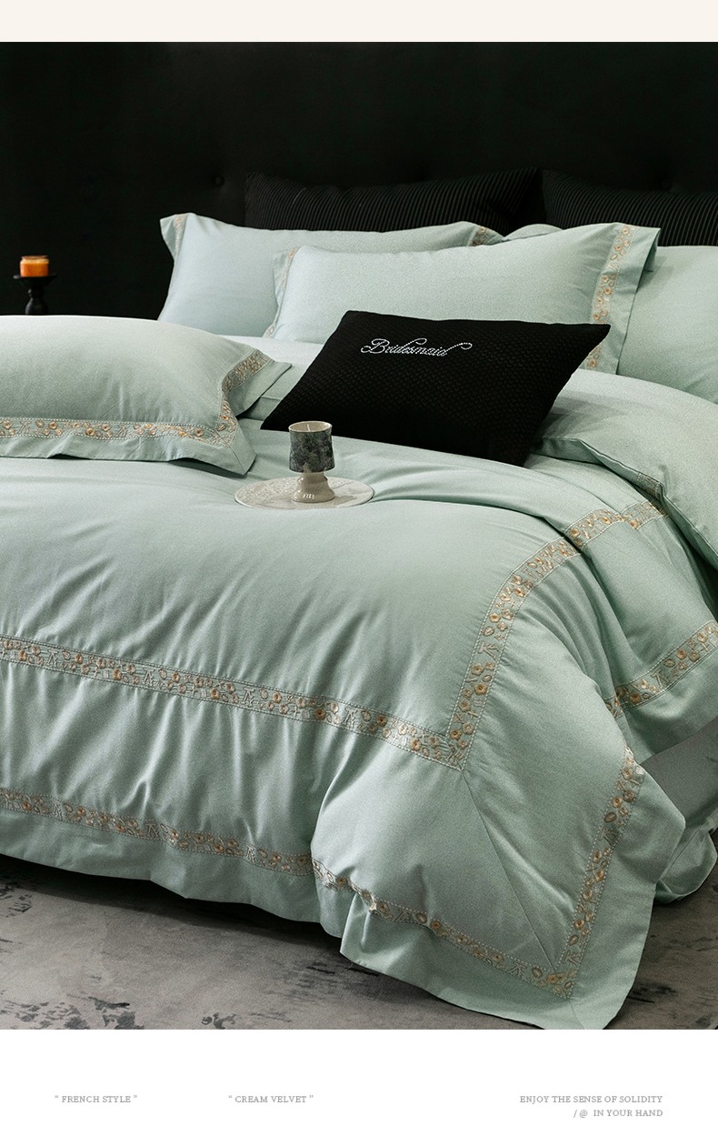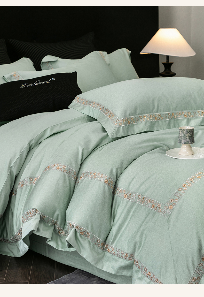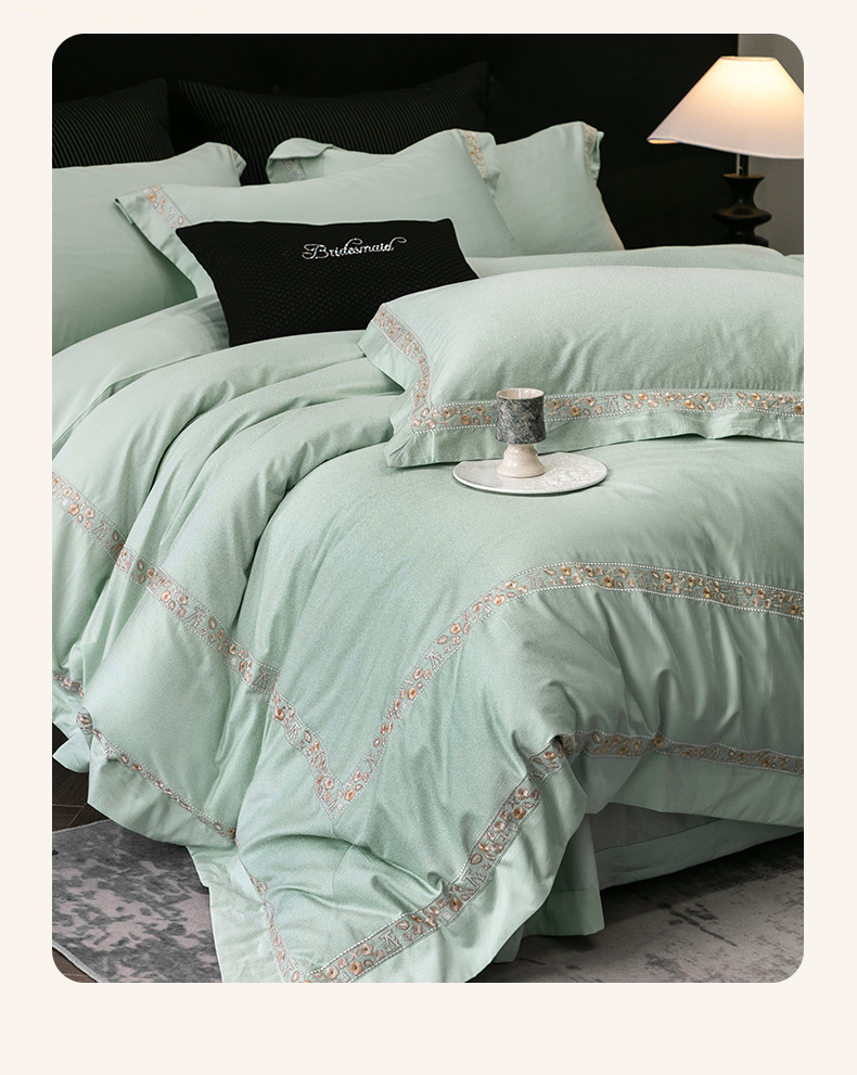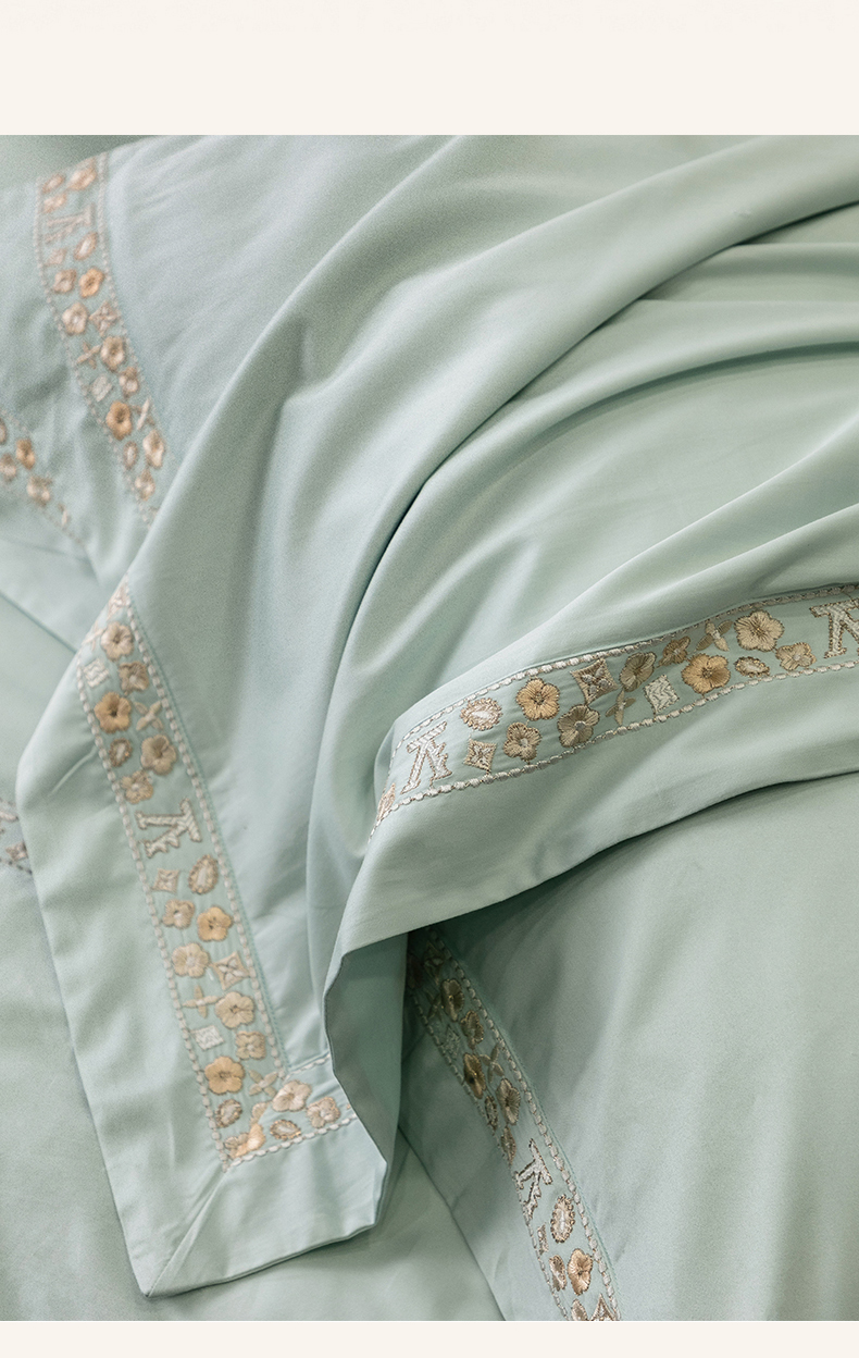 保罗圣迪奥 2025新款全棉长绒棉纯棉刺绣四件套--缇梵 缇梵-青石绿