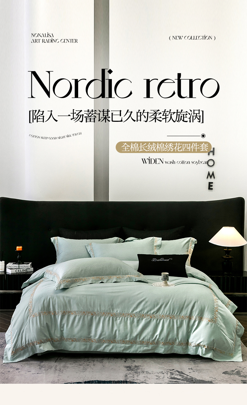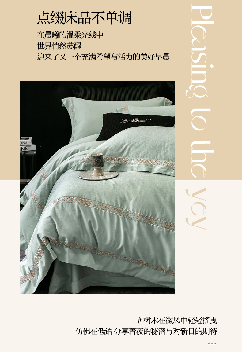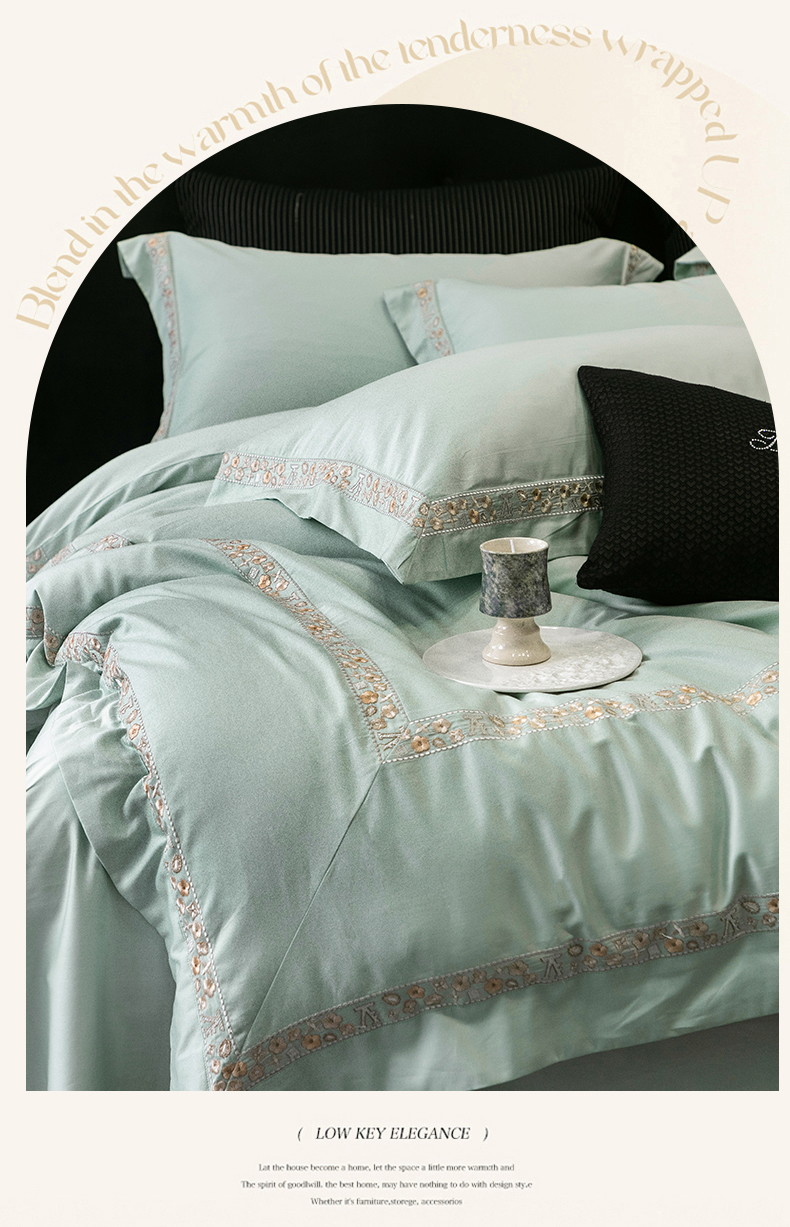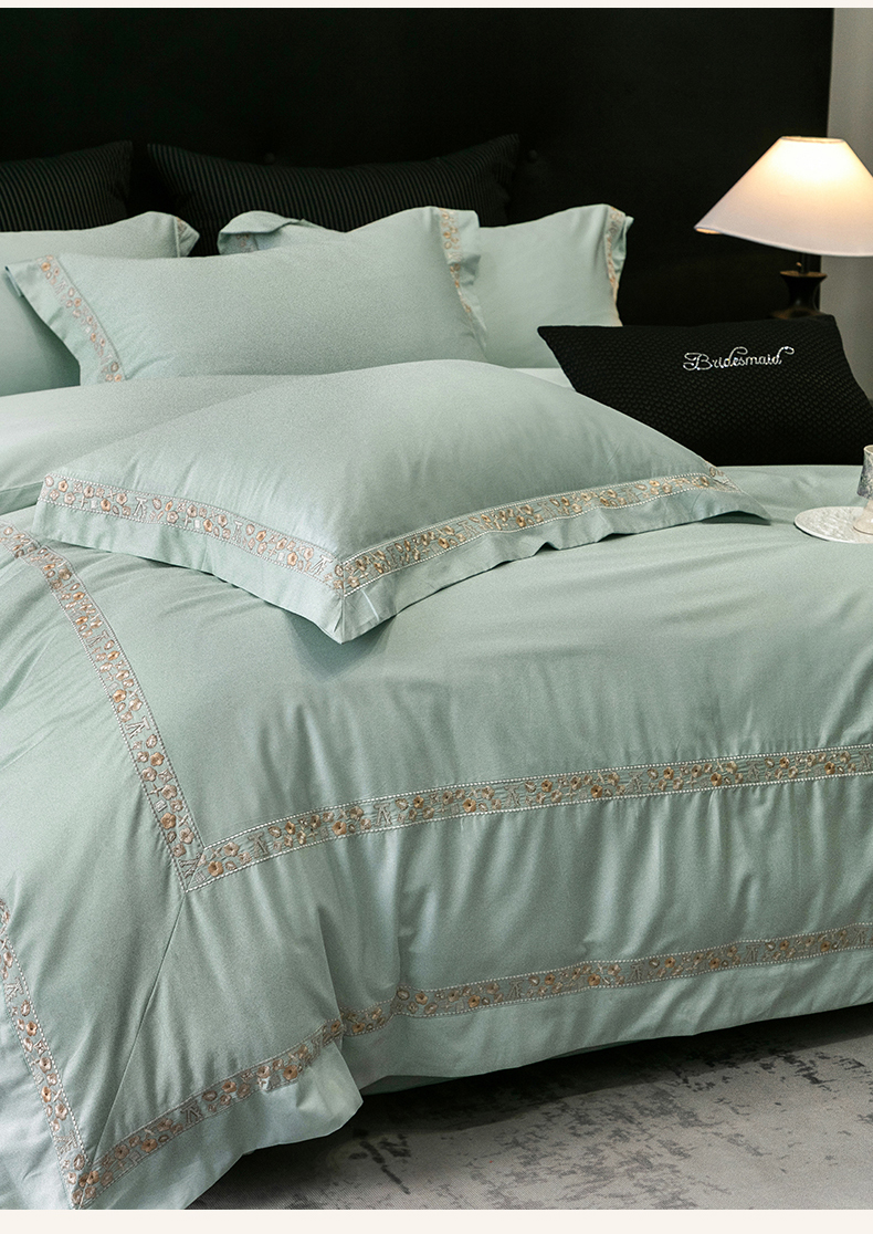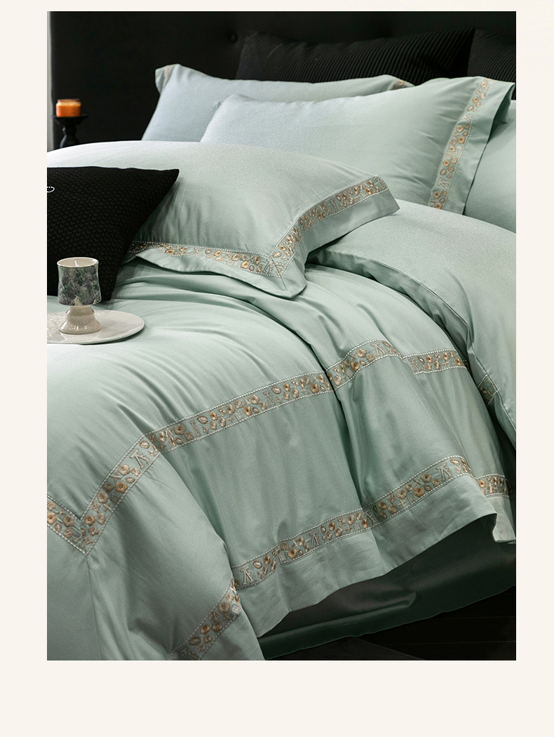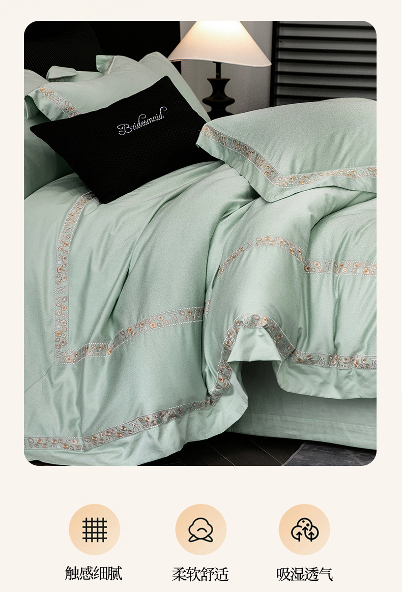商品名称:保罗圣迪奥 2025新款全棉长绒棉纯棉刺绣四件套--缇梵 缇梵-青石绿