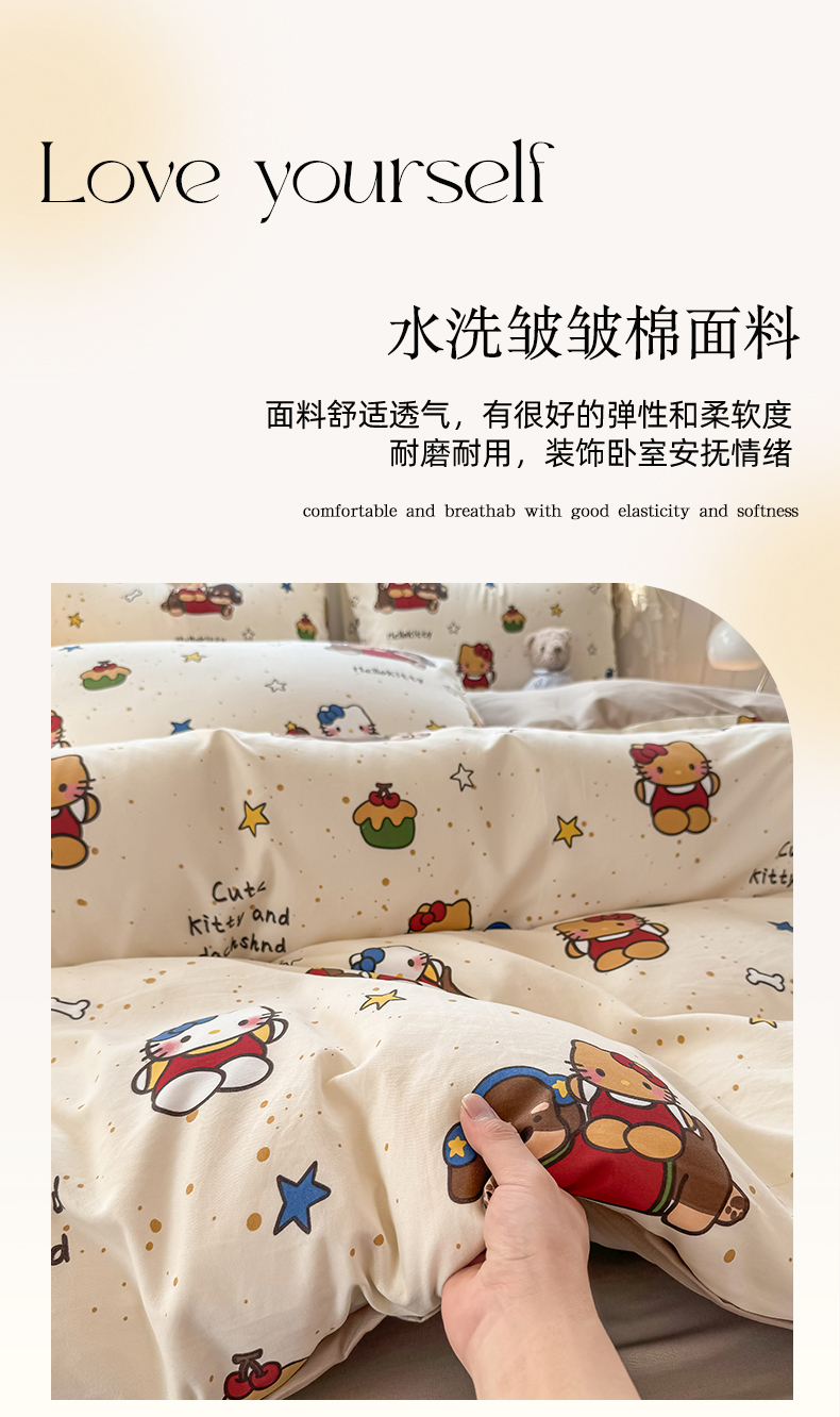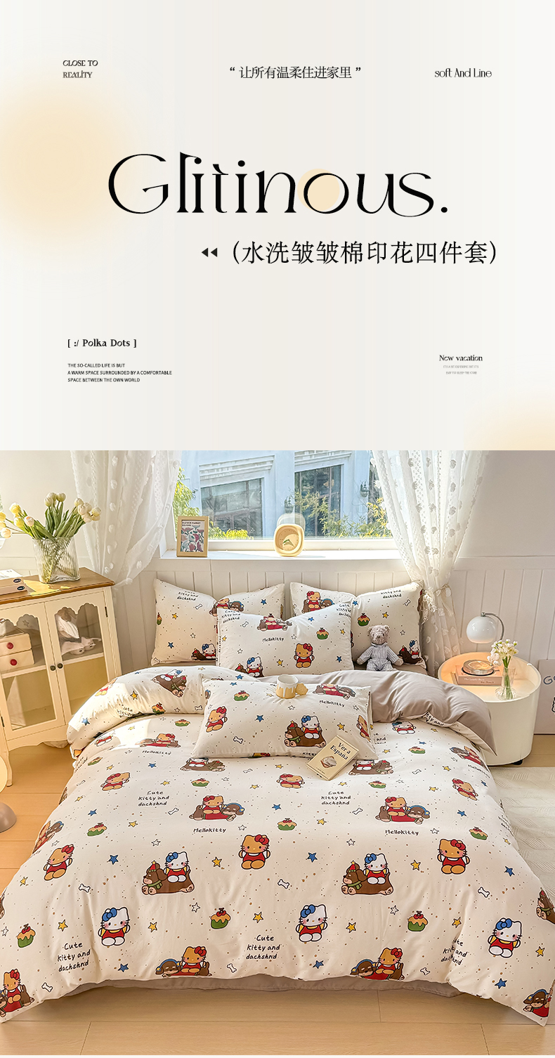 当前位置: 91家纺网 > 商品网购 > 床品套件 > 四件套 > 其它四件套 > 丝芙妮家居(原乐视家纺) 2025春夏新款水洗皱皱棉印花四件套 凯蒂