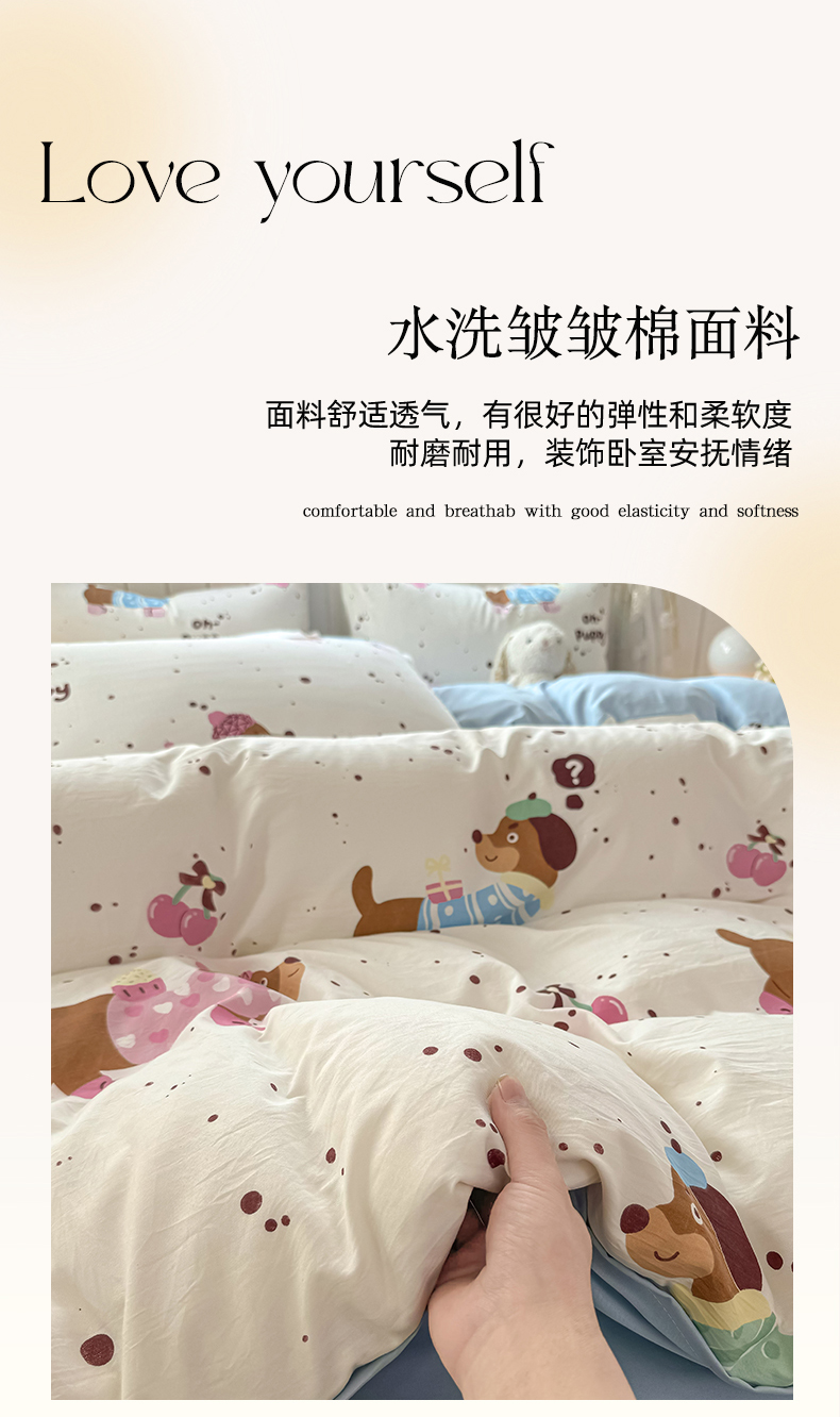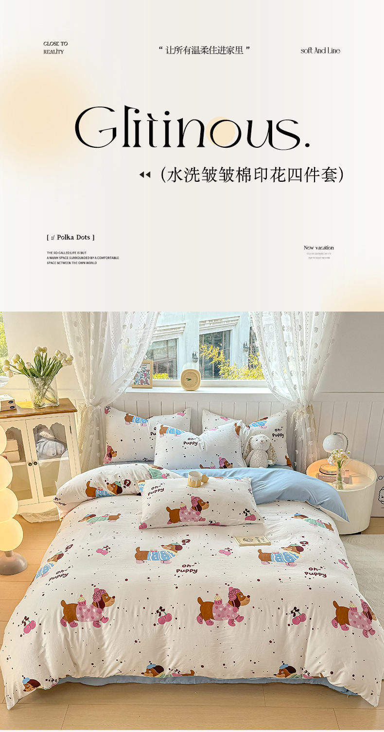 当前位置: 91家纺网 > 商品网购 > 床品套件 > 四件套 > 其它四件套 > 丝芙妮家居(原乐视家纺) 2025春夏新款水洗皱皱棉印花四件套 小腊肠