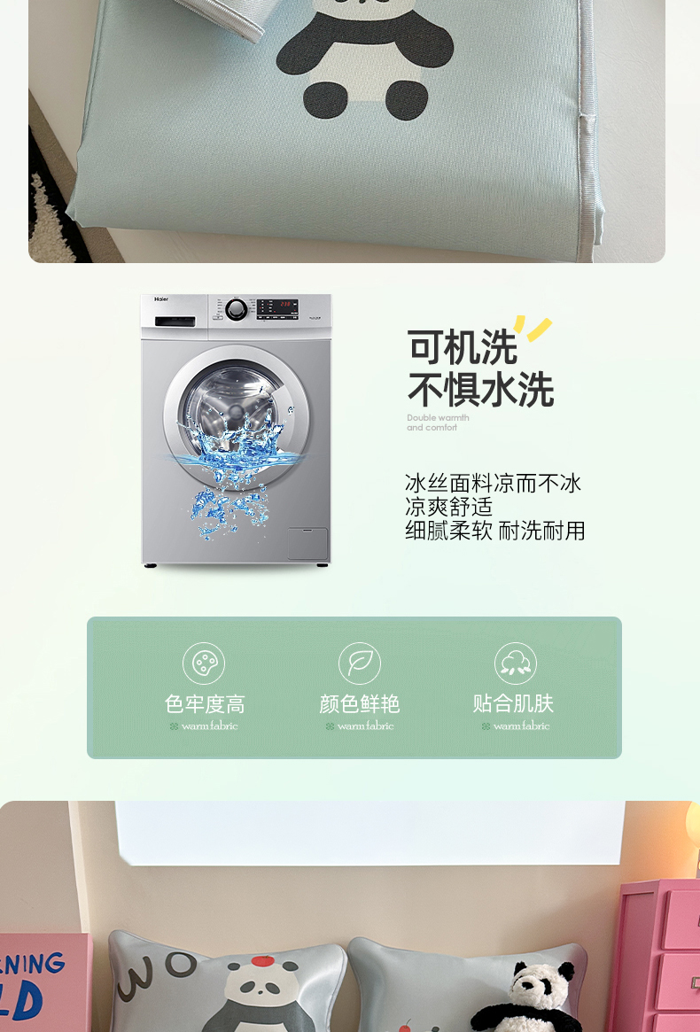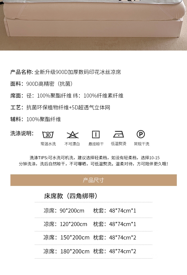 商品名称:萝莉家纺 2025新款升级900D加厚数码印花斜纹冰丝床席款凉席三件套 苹果熊猫蓝