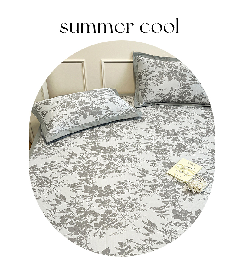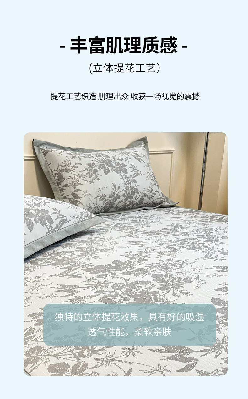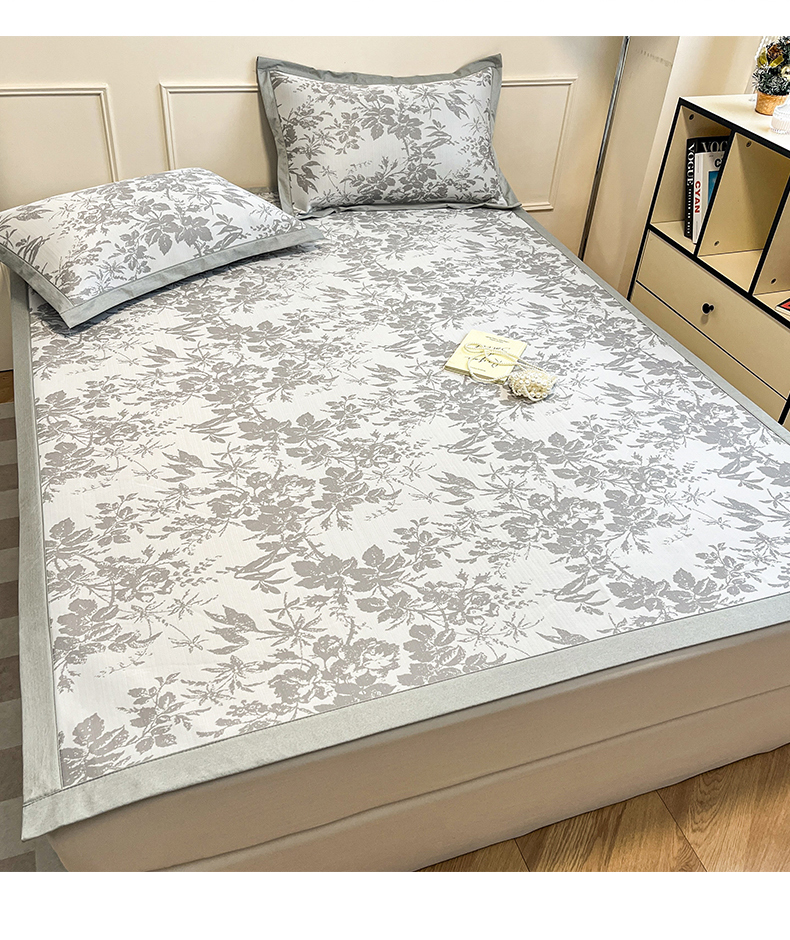 宜代光年 2025新款冷凝丝可水洗提花凉感席-床席款 凉感繁花-灰
