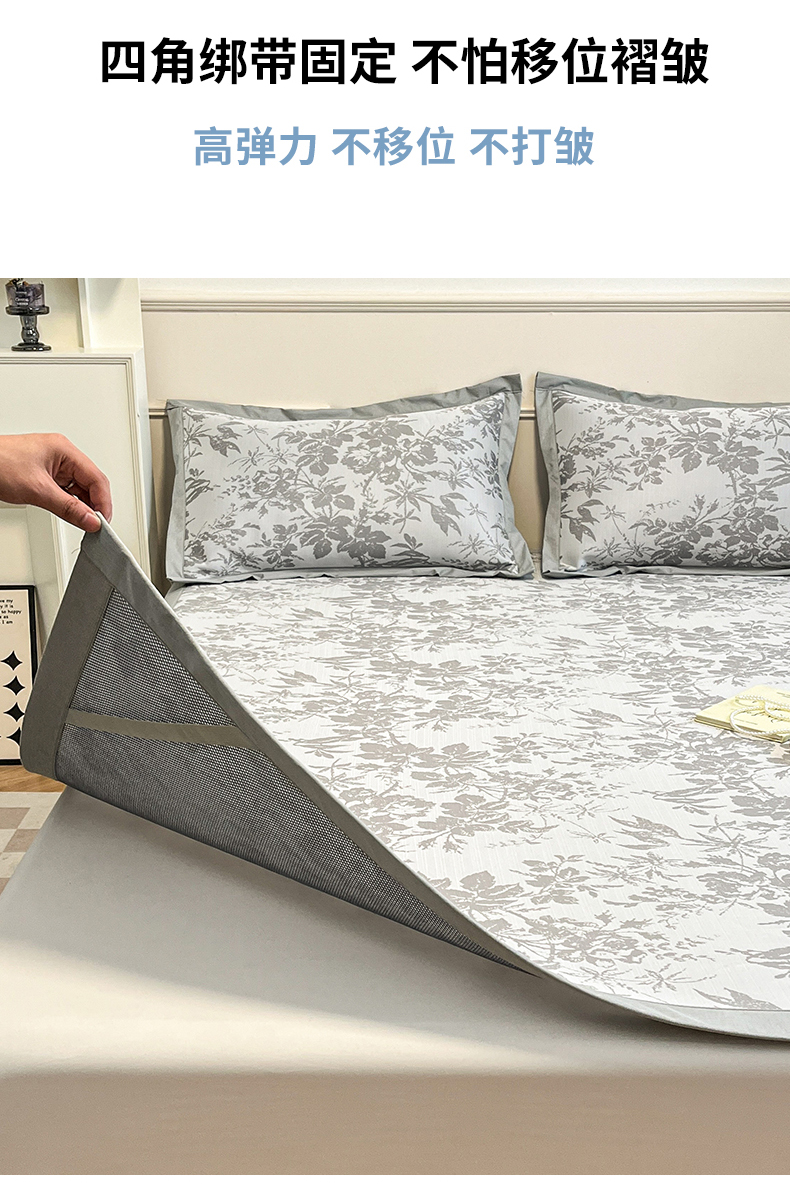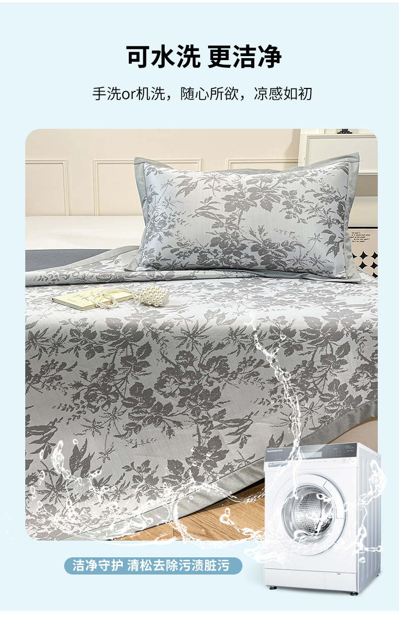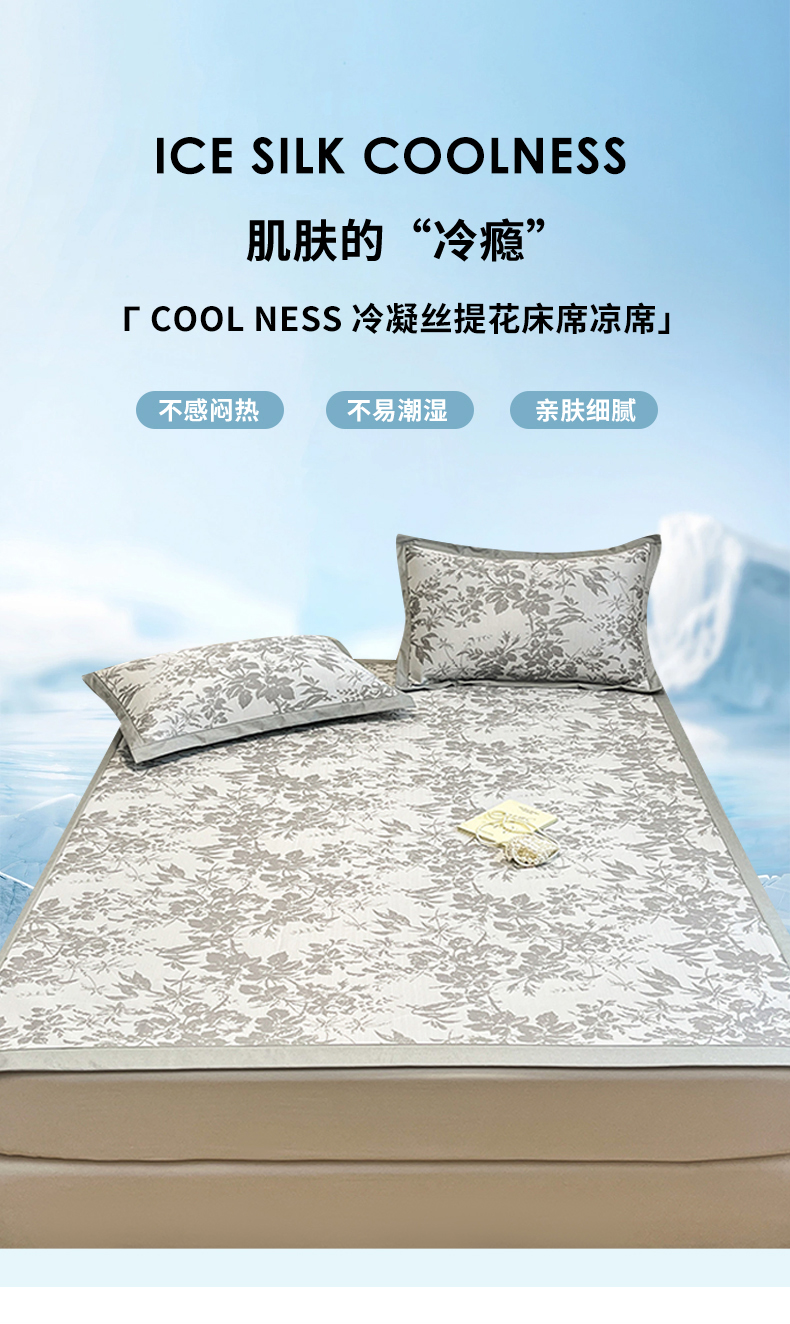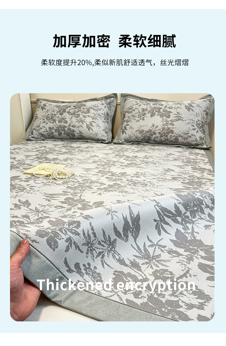 商品名称:宜代光年 2025新款冷凝丝可水洗提花凉感席-床席款 凉感繁花-灰