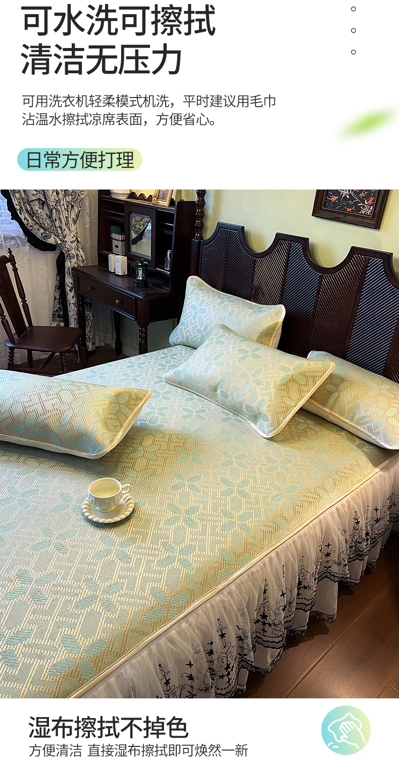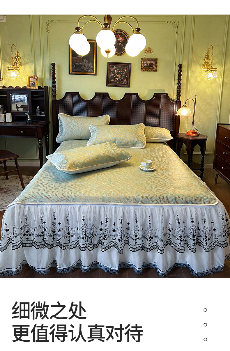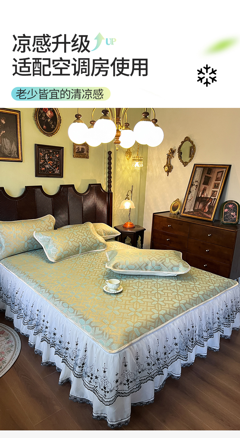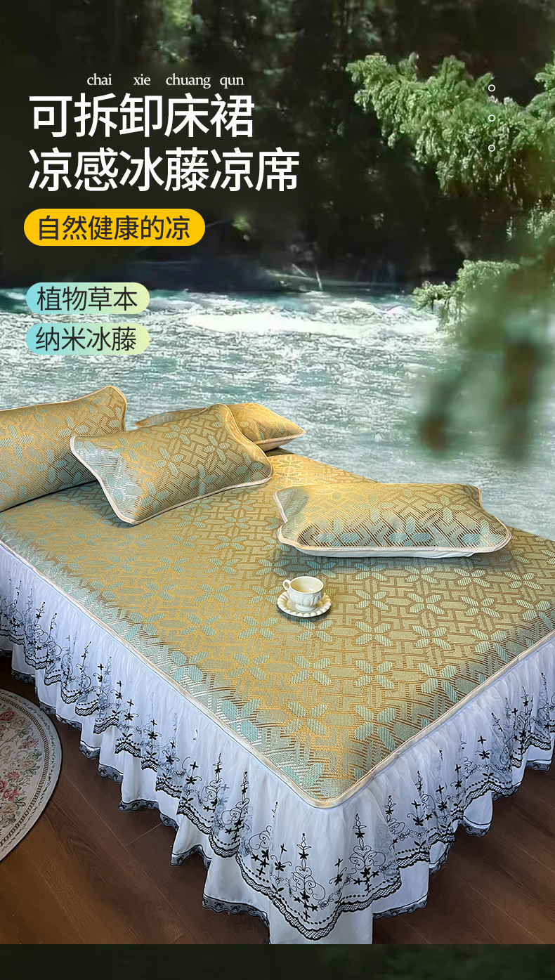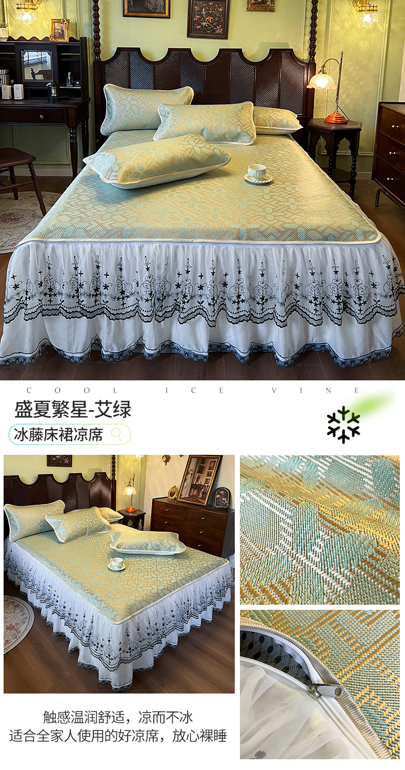 商品名称:网红馆(ck家纺) 2025新款可脱卸床裙款冰藤席-盛夏繁星 艾绿