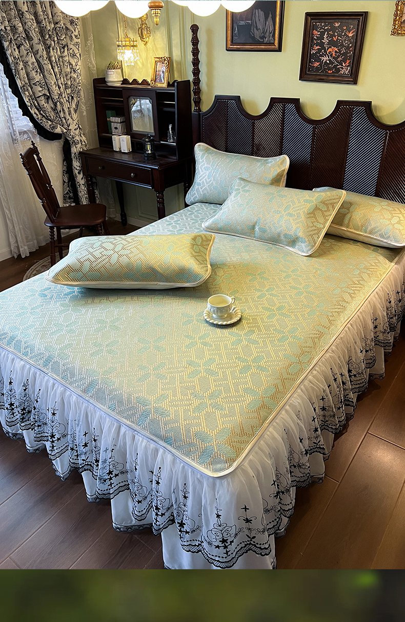 网红馆(ck家纺) 2025新款可脱卸床裙款冰藤席-盛夏繁星 艾绿