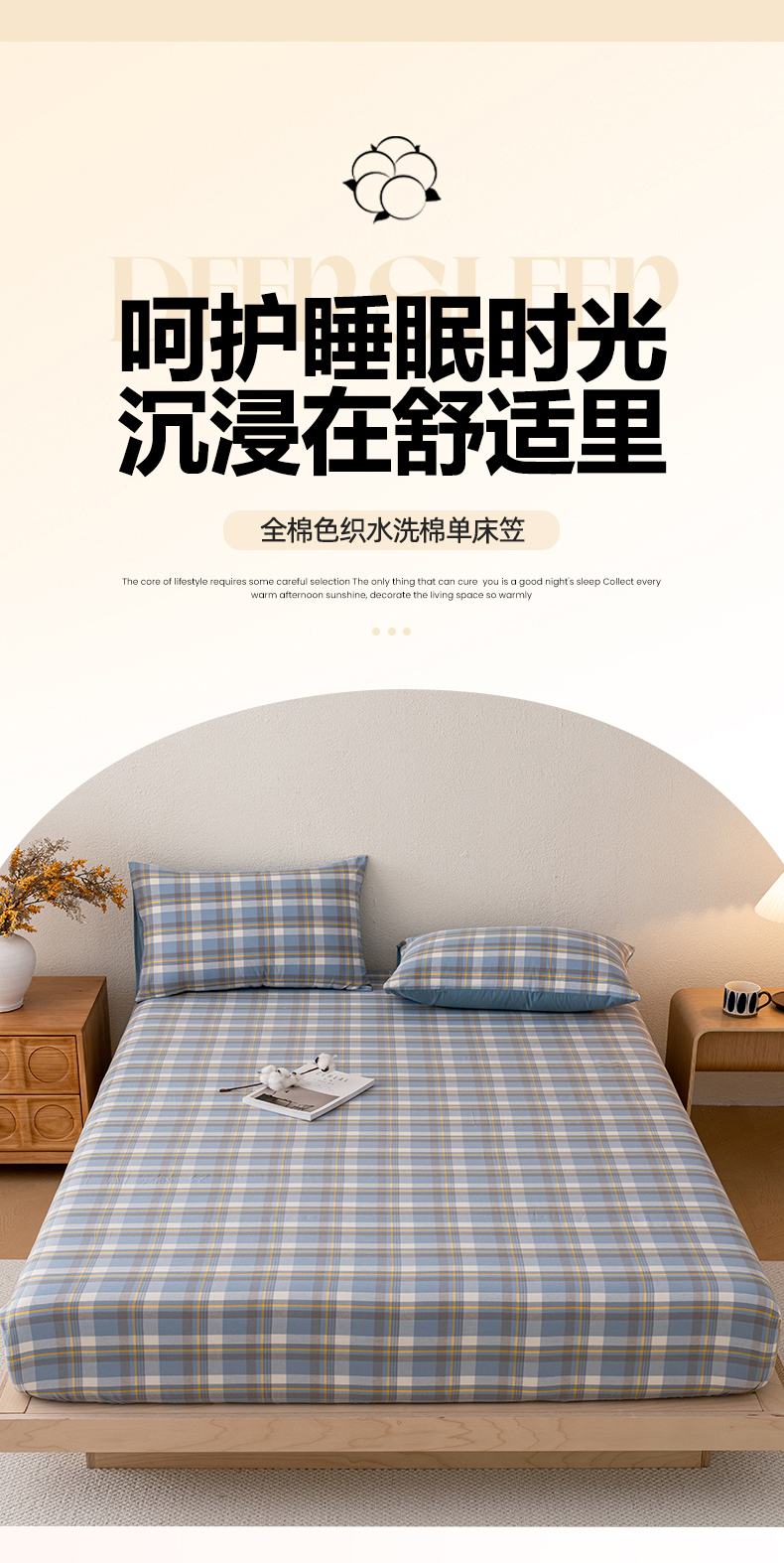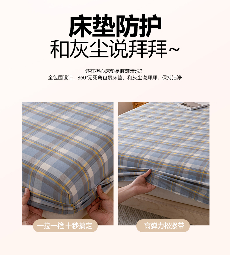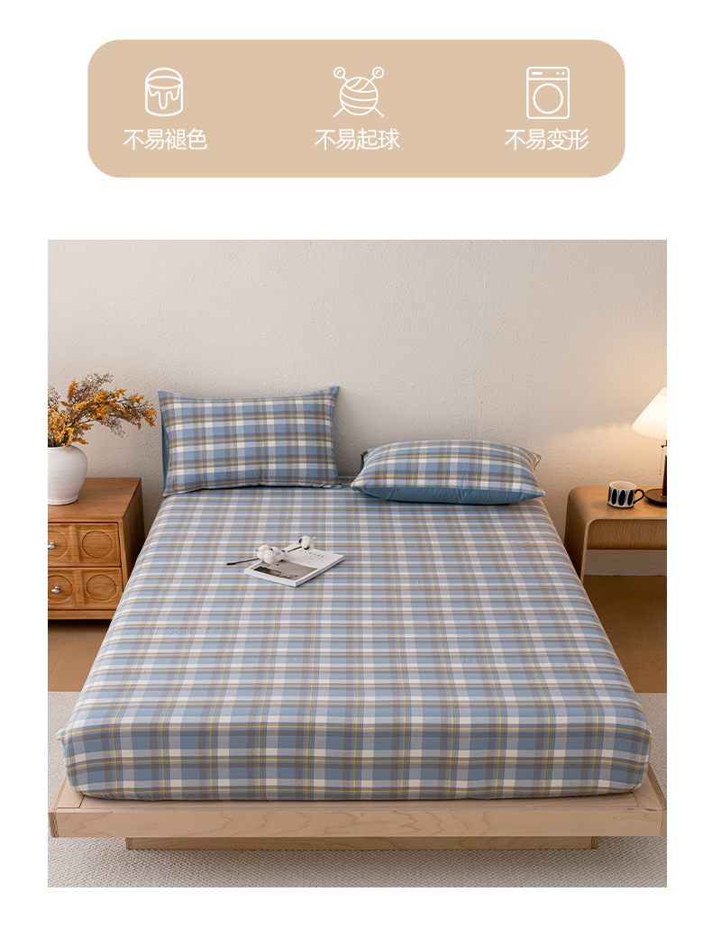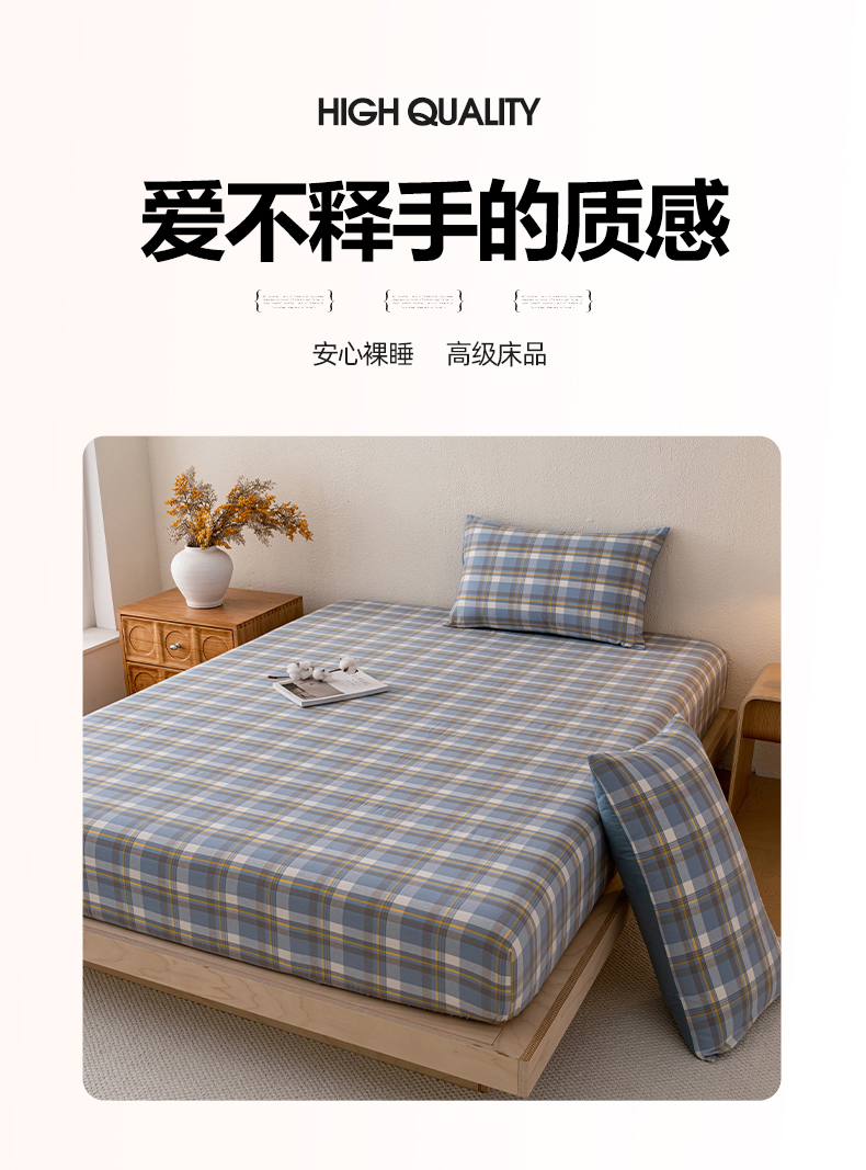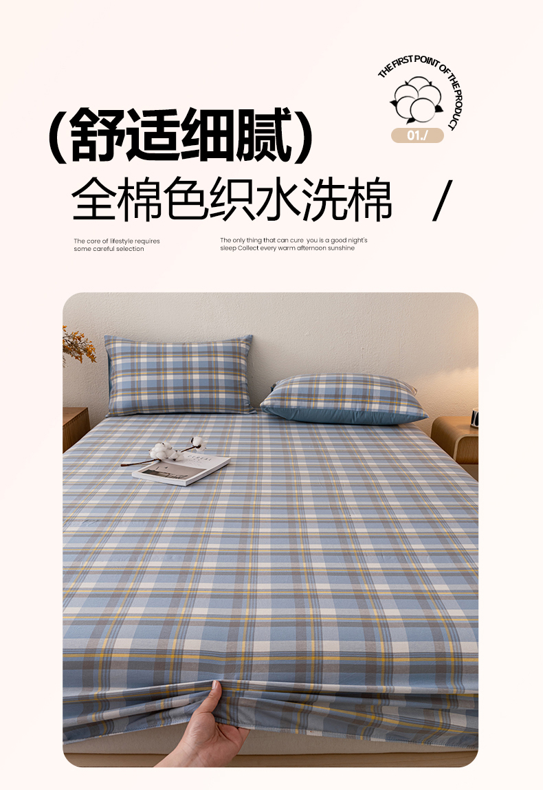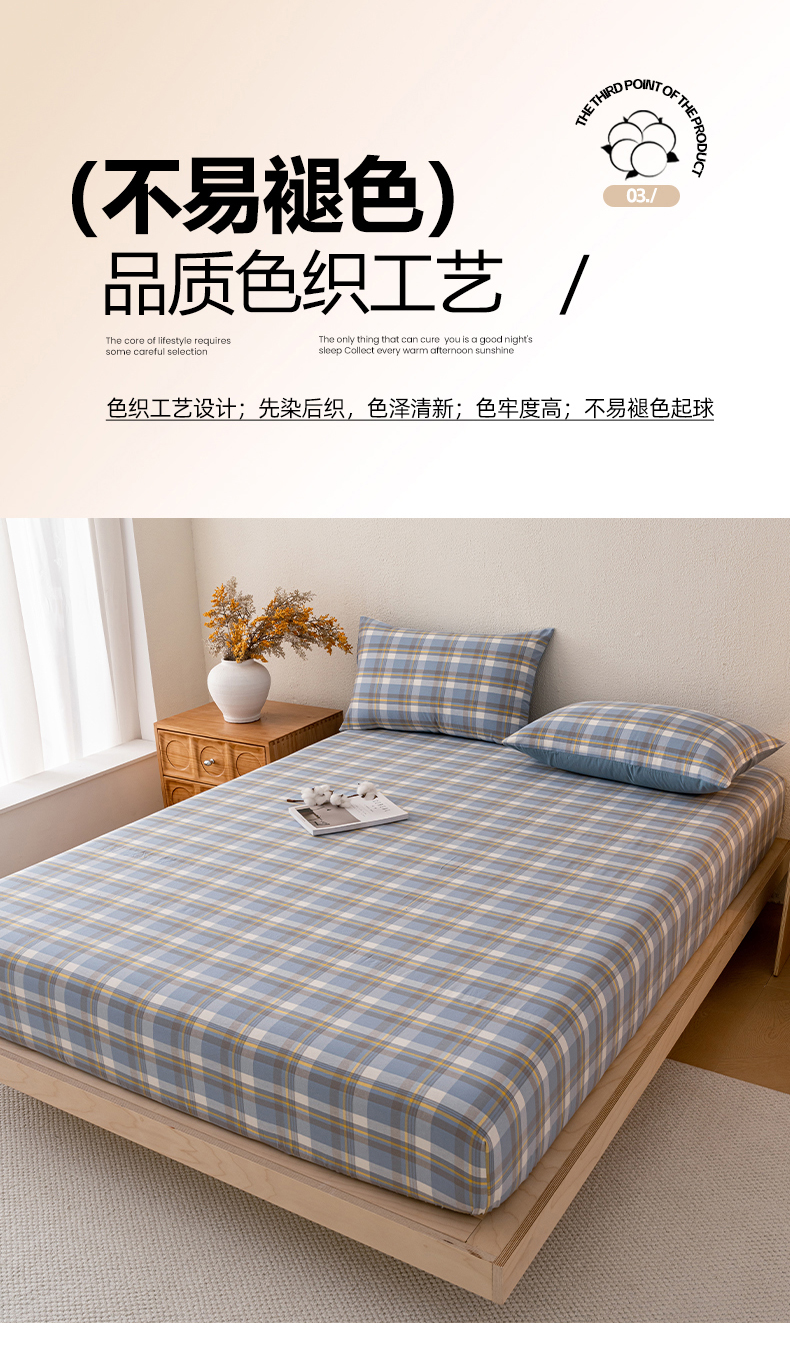 商品名称:吉象家纺 2025新款全棉色织水洗棉床笠三件套 初春