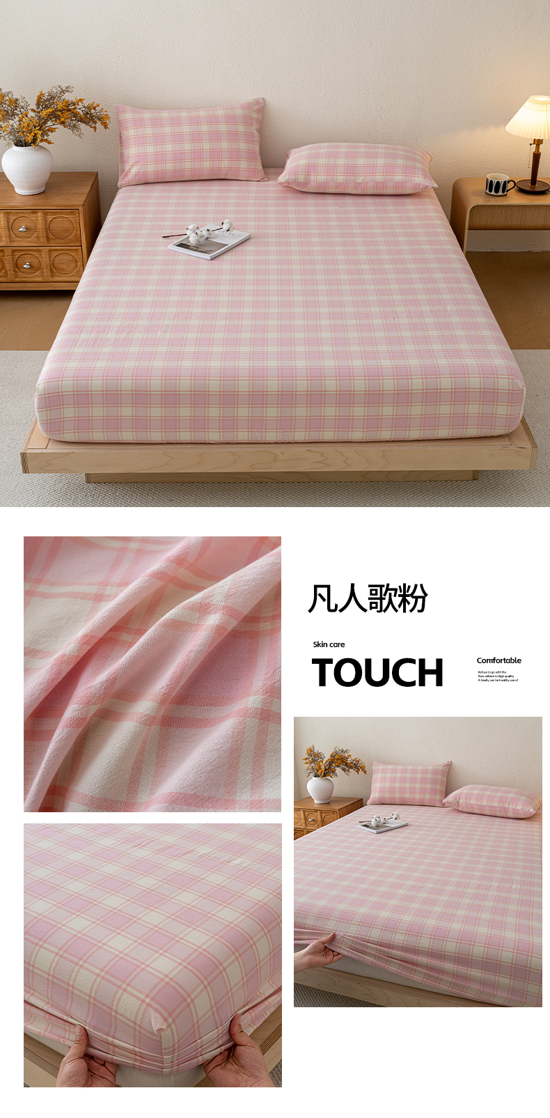 吉象家纺 2025新款全棉色织水洗棉床笠三件套 初春