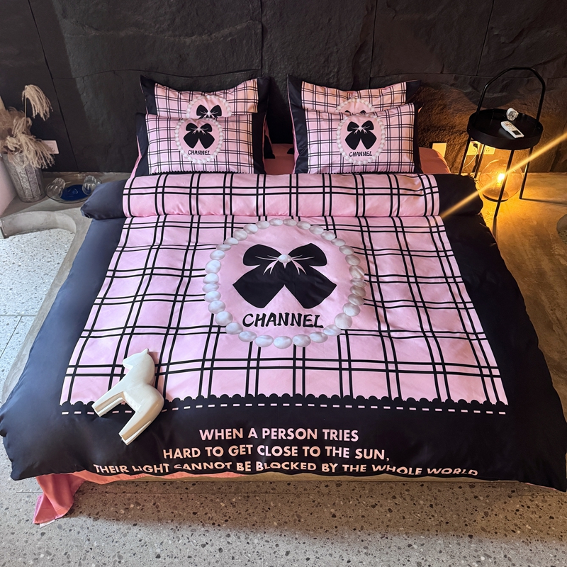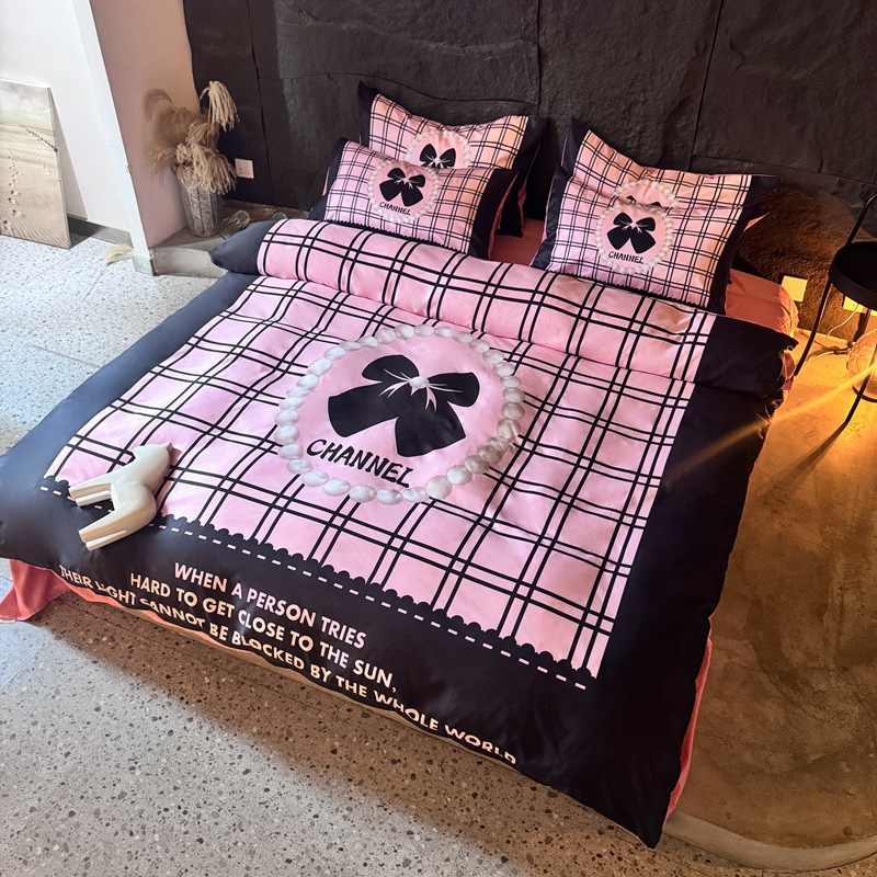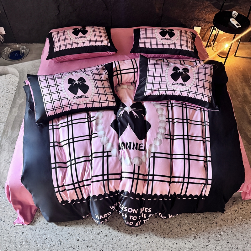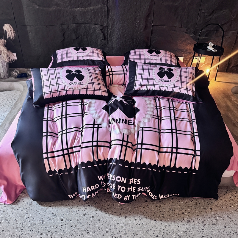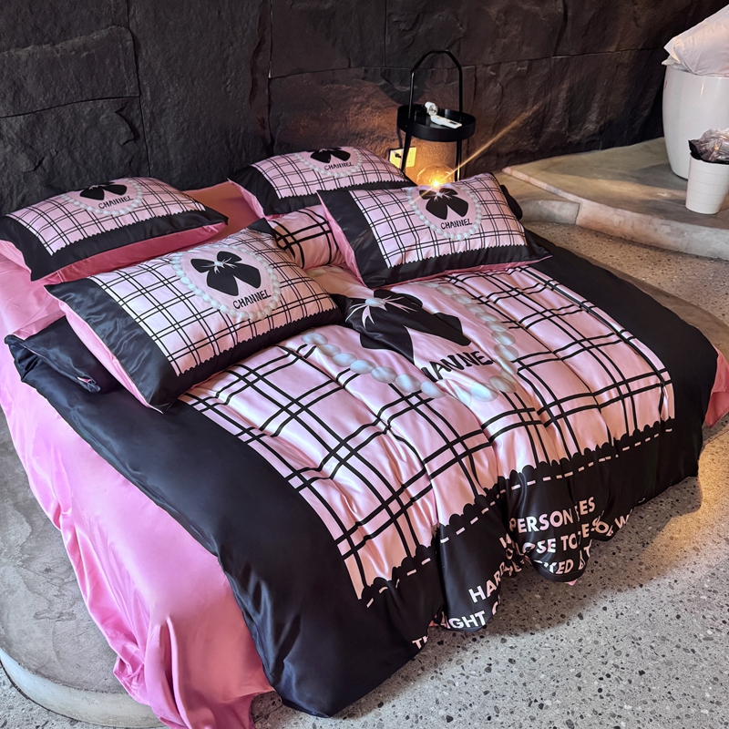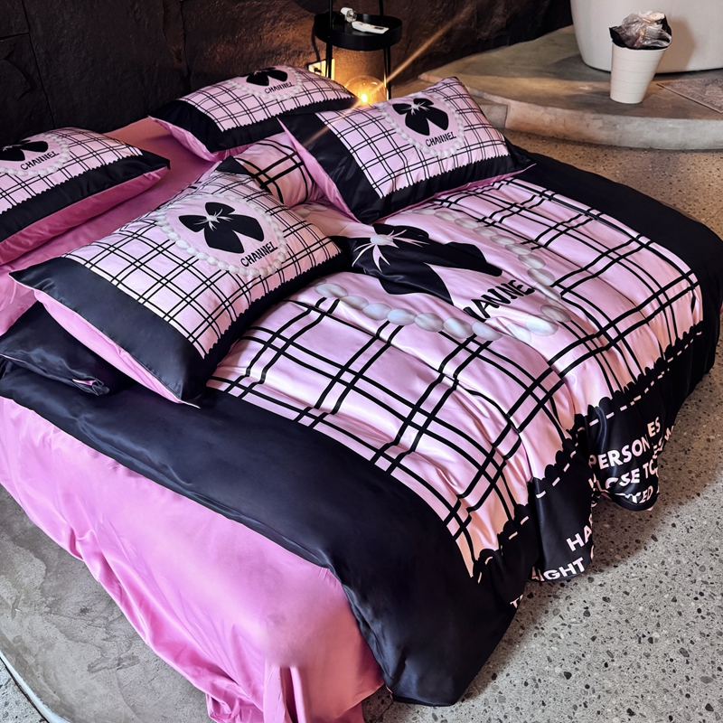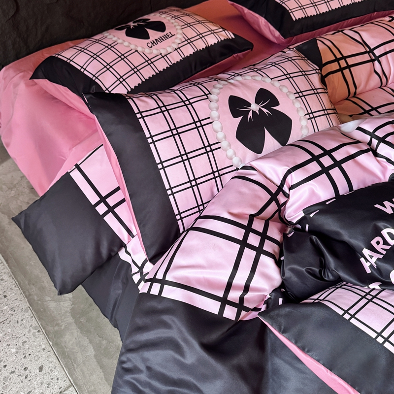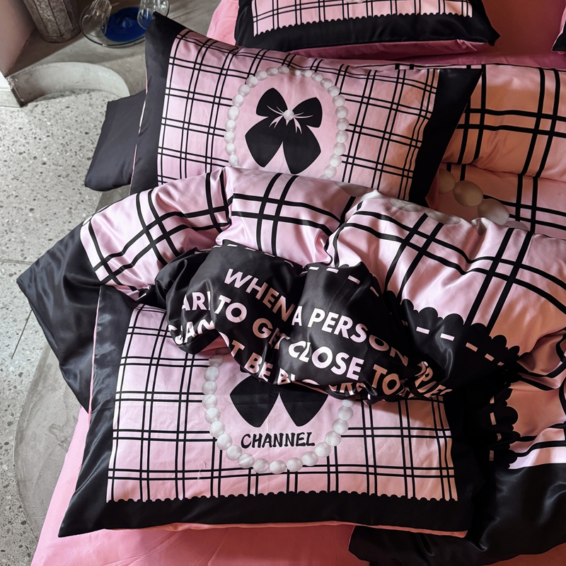 丽斐纺织 2025新款冰丝四件套 黑粉格格