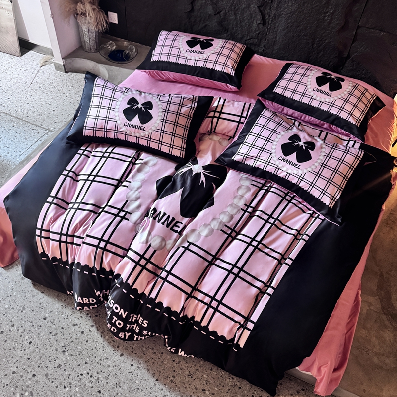 商品名称:丽斐纺织 2025新款冰丝四件套 黑粉格格