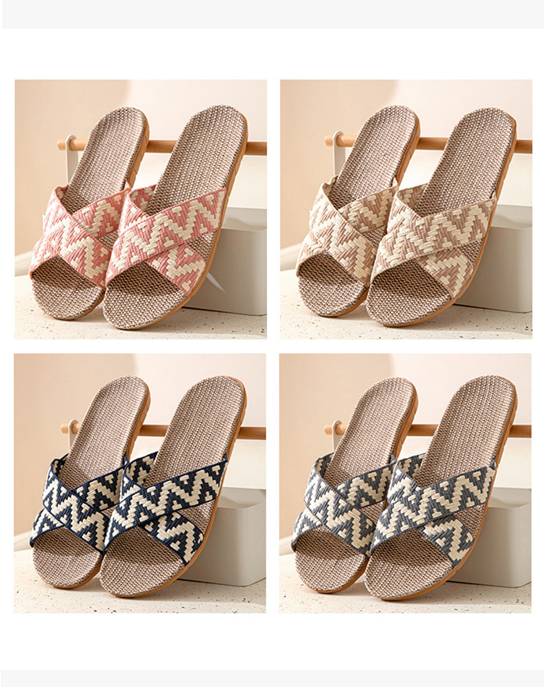 良品汇馆 2025新款日式无印家居情侣室内拖鞋良品木地板亚麻拖鞋居家防滑男女夏季凉 交叉拖鞋-米黄女