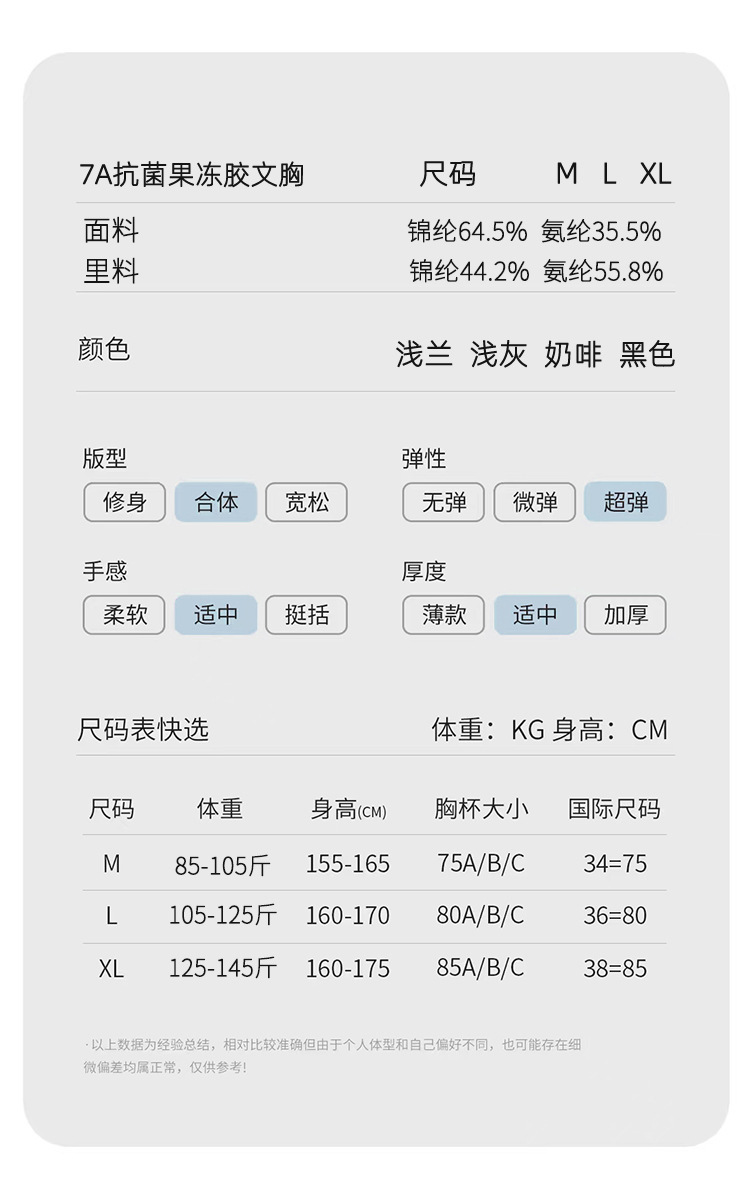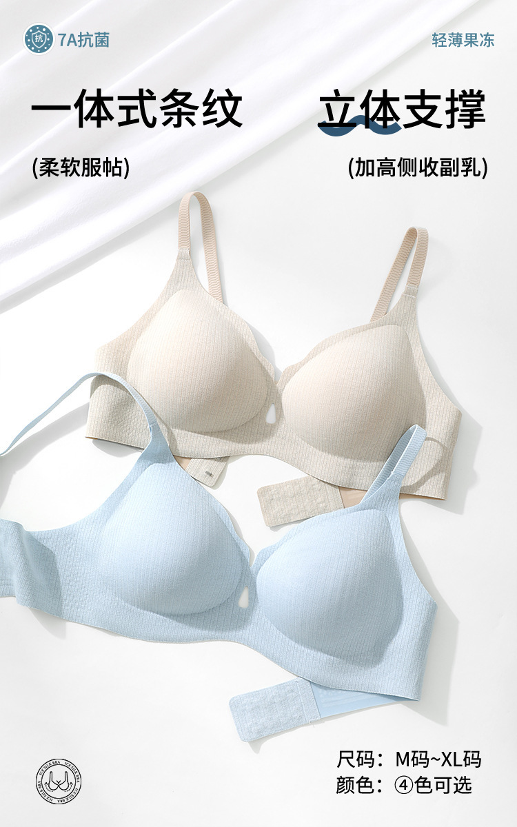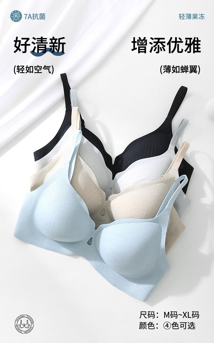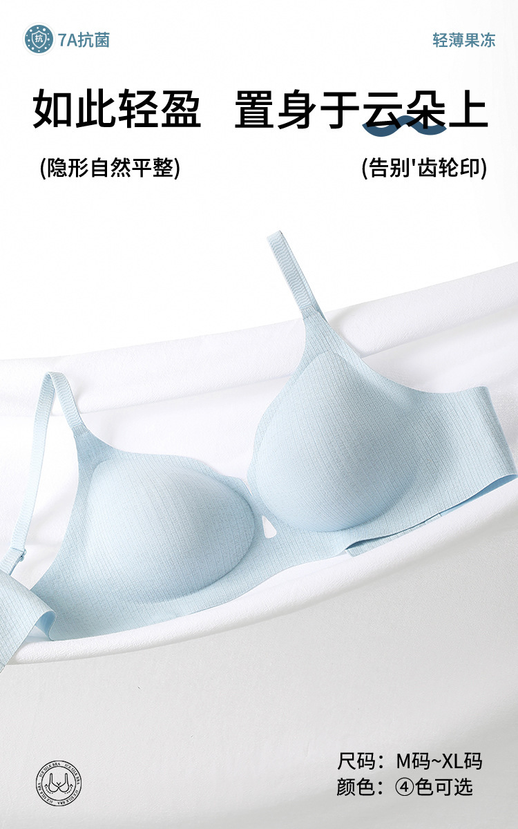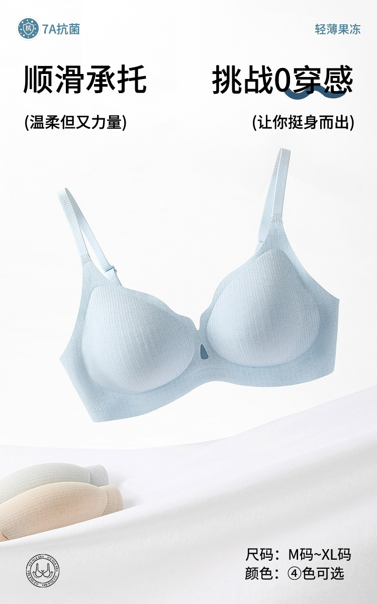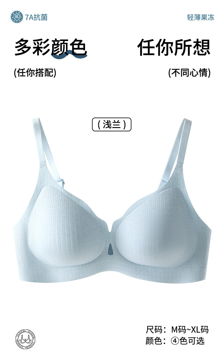 商品名称:良品汇馆 2025新款日式无印暗纹锦氨文胸良品无痕凉感内衣透气无钢圈固定杯女生胸罩 浅蓝