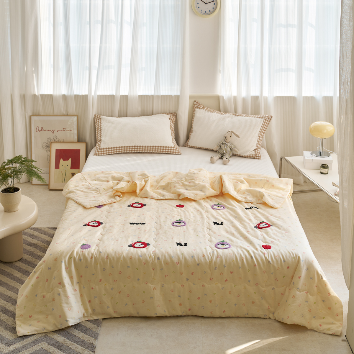 (总)洋铭区 2023新款全棉皱皱双层纱夏被,粉色郁金香,甜萝卜,旺旺熊,微笑,香甜草莓,小花仙,小鸭鸭