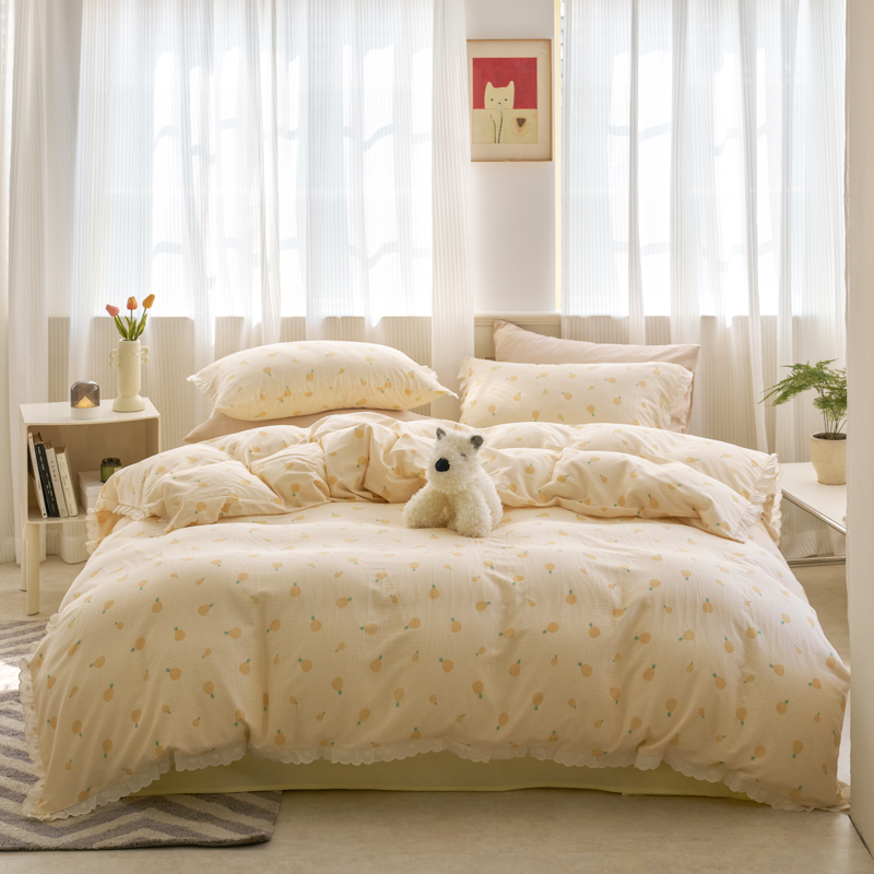 洋铭区(原狠狠爱) 2025新款花边全棉双层纱四件套 花茶粉格