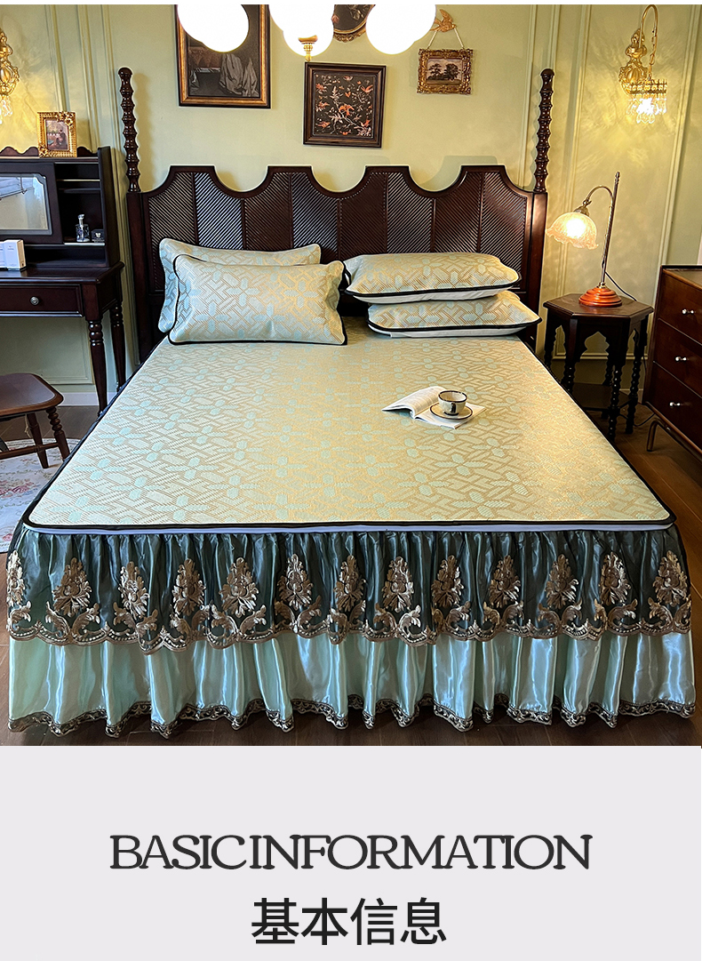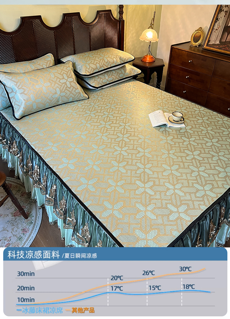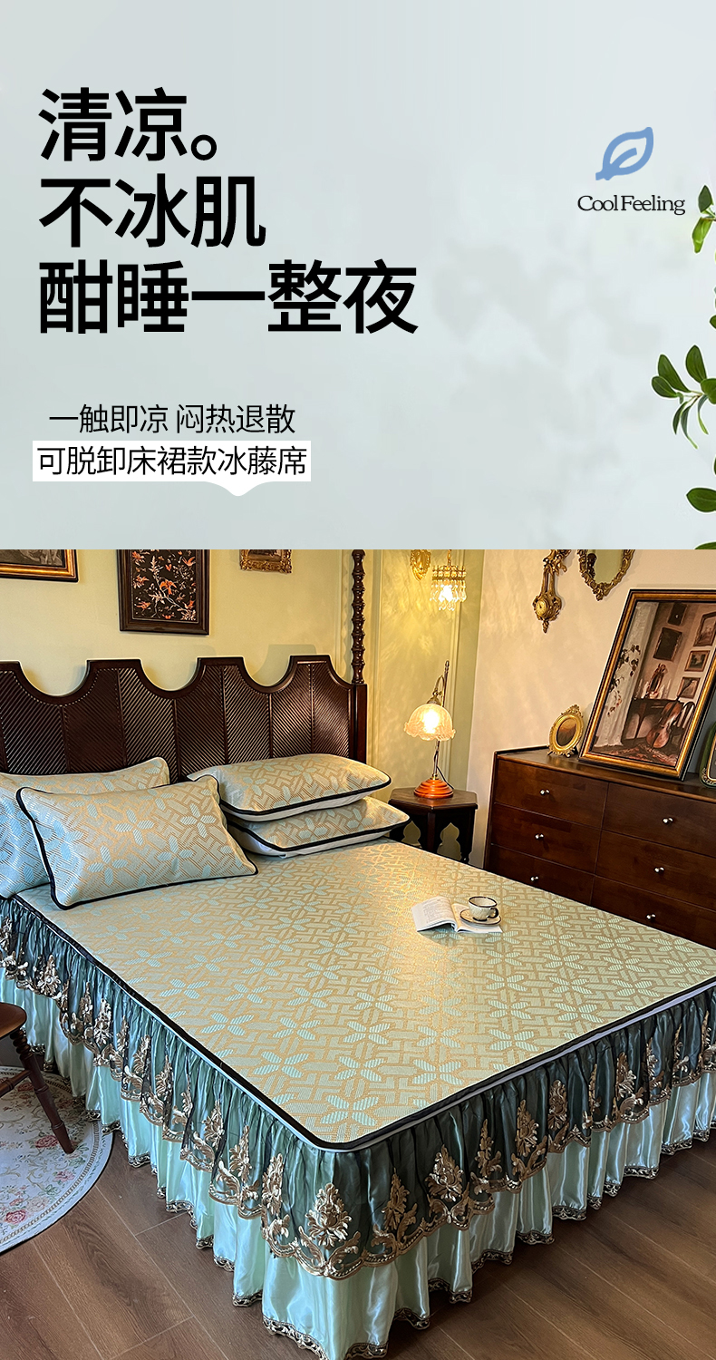 2.0*2.2床凉席三件套床裙200*220 枕套一对