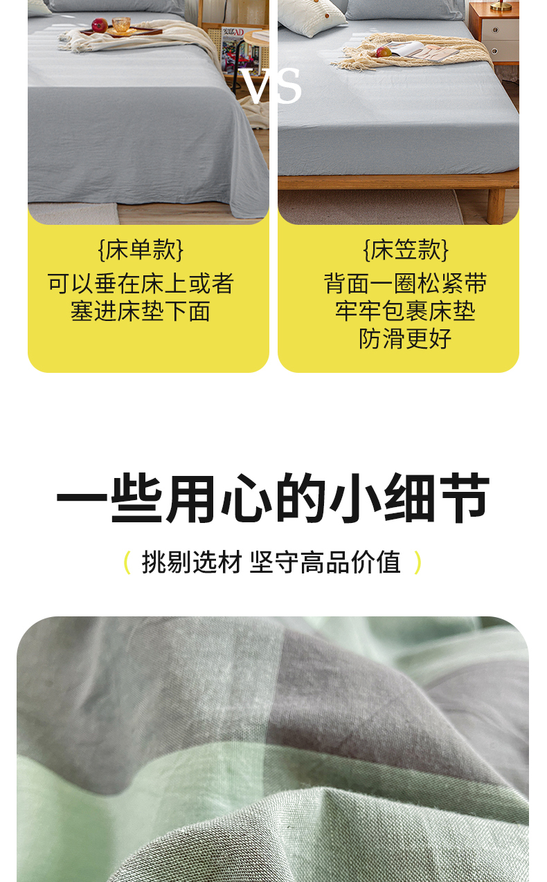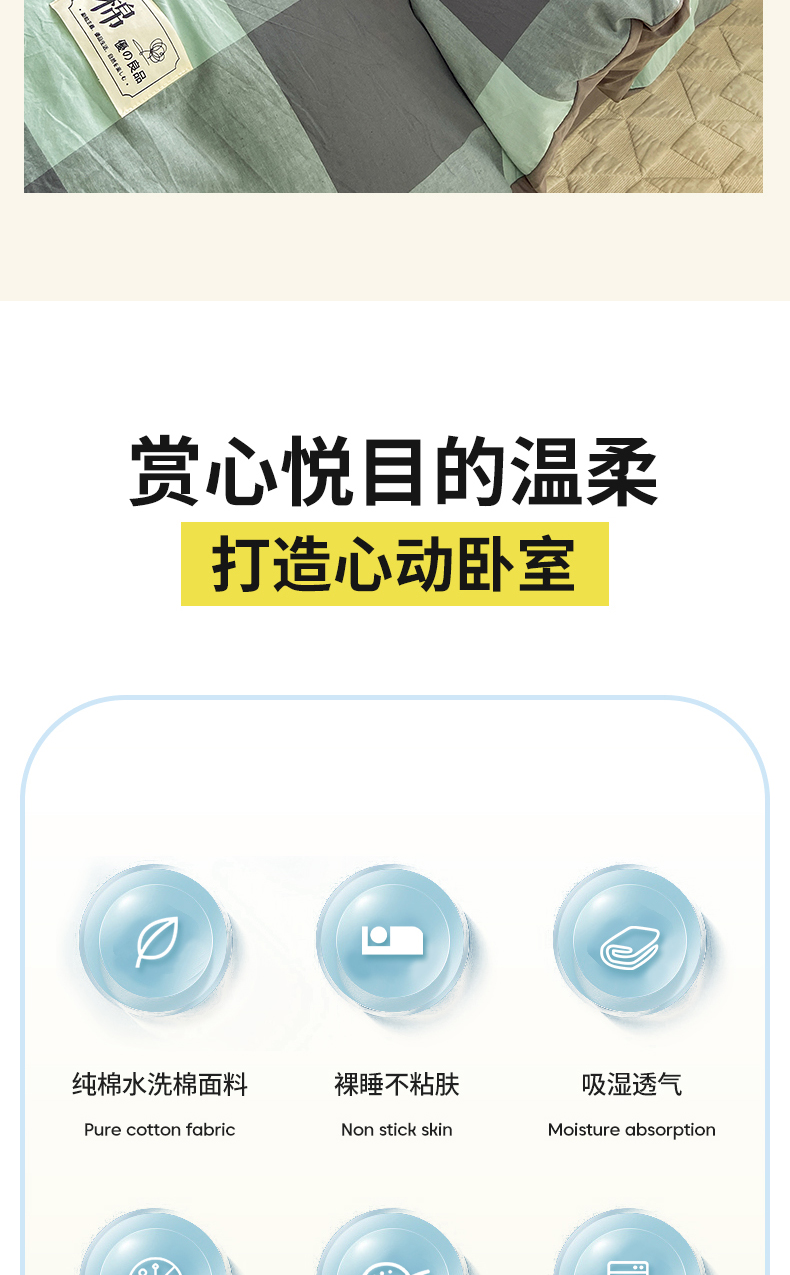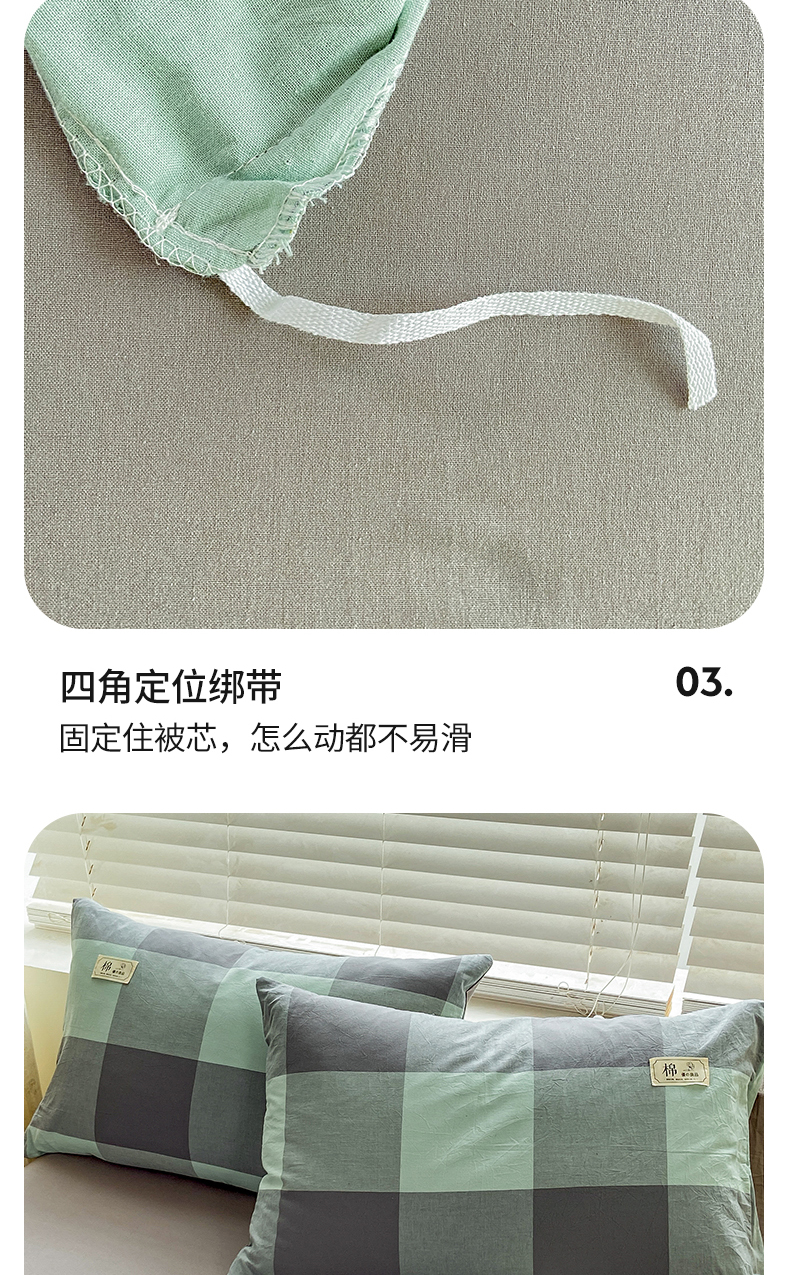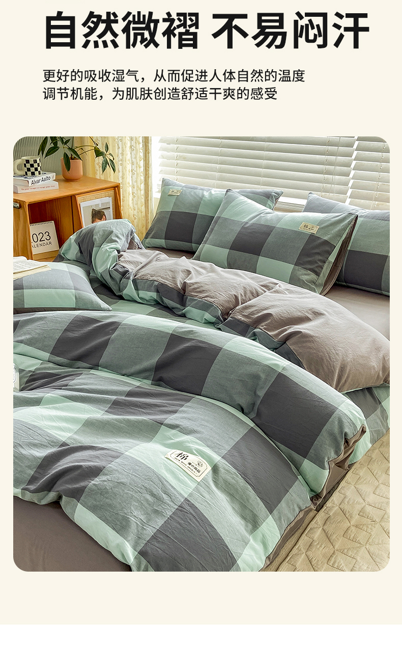 恋人优选 2025新款A类全棉纯棉水洗棉系列(AB版)单被套 被套单件 绿灰大格(AB版)