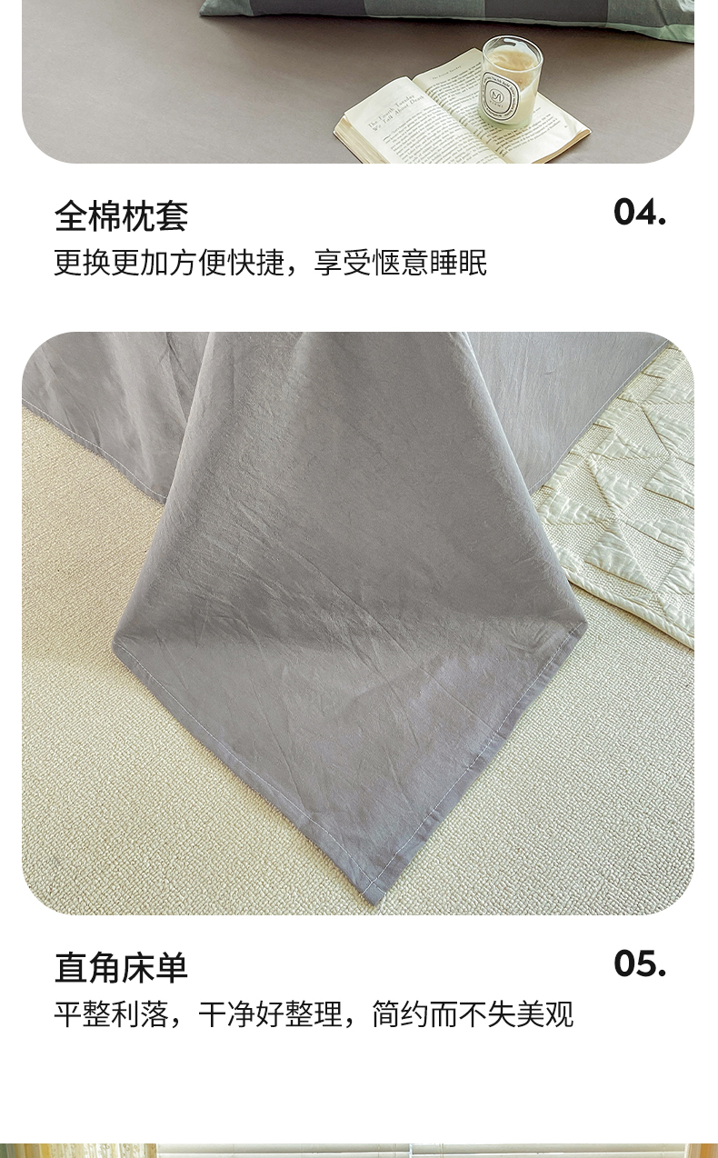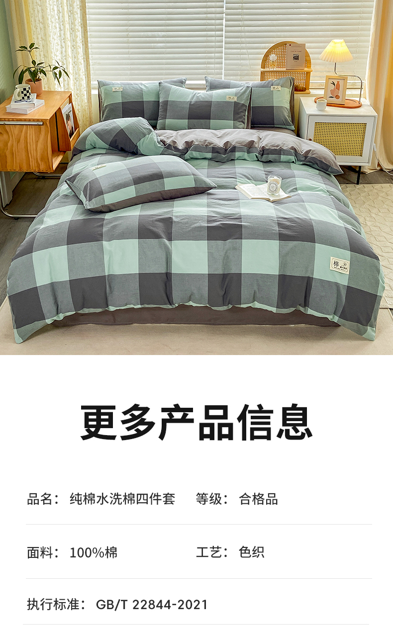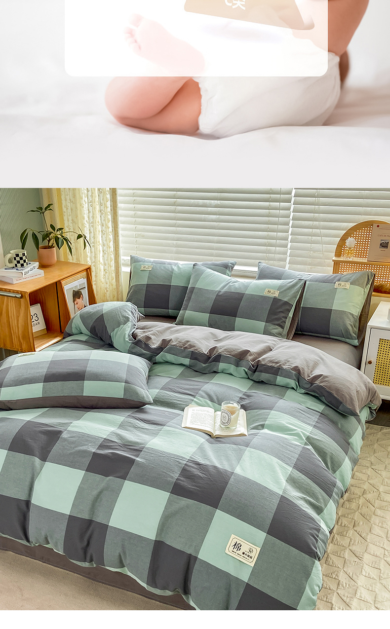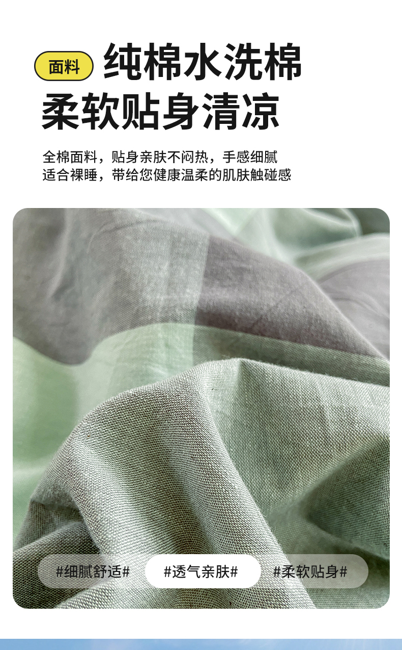 商品名称:恋人优选 2025新款A类全棉纯棉水洗棉系列(AB版)单被套 被套单件 绿灰大格(AB版)